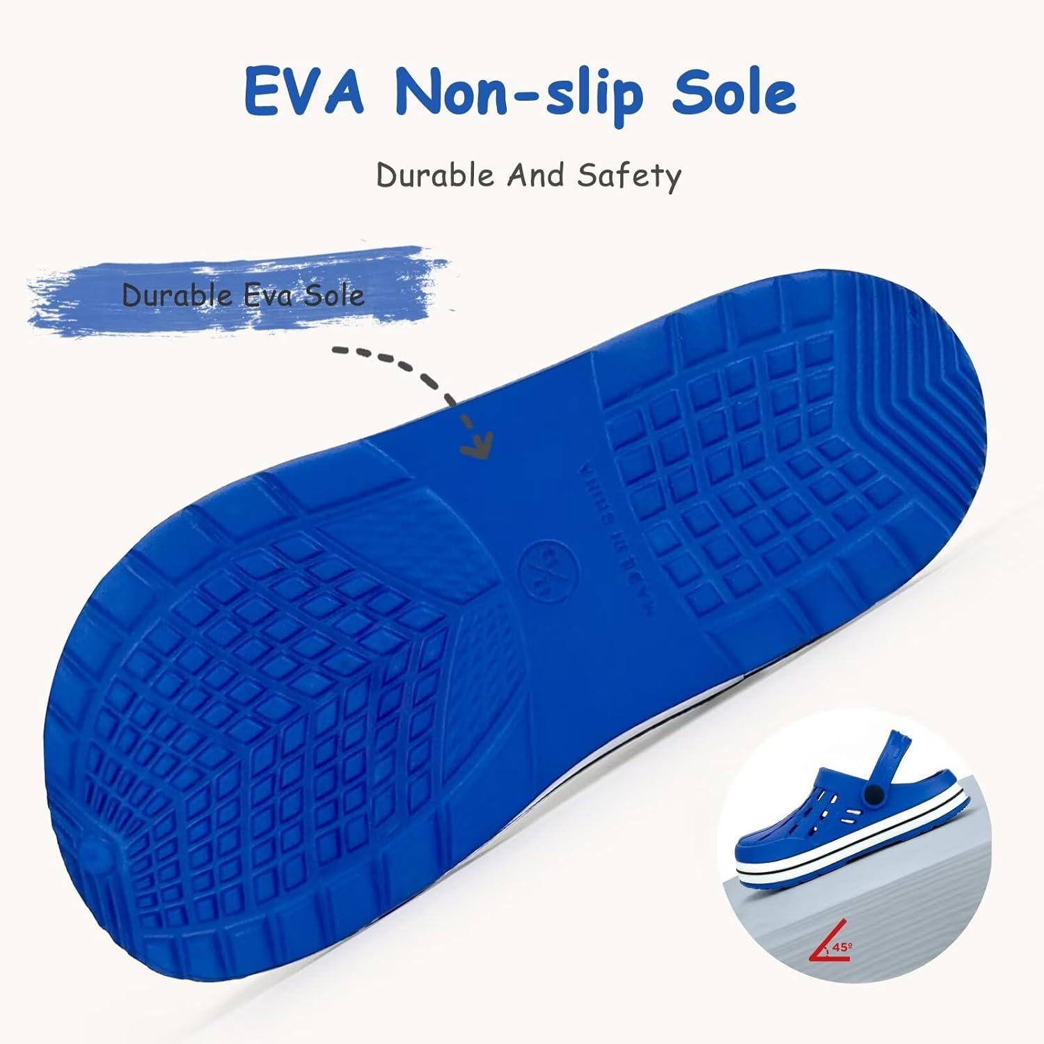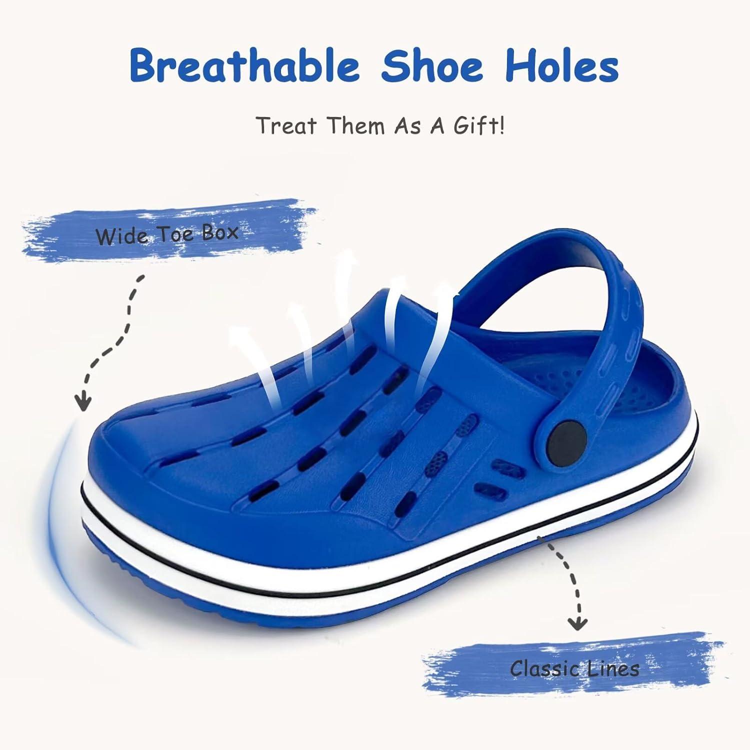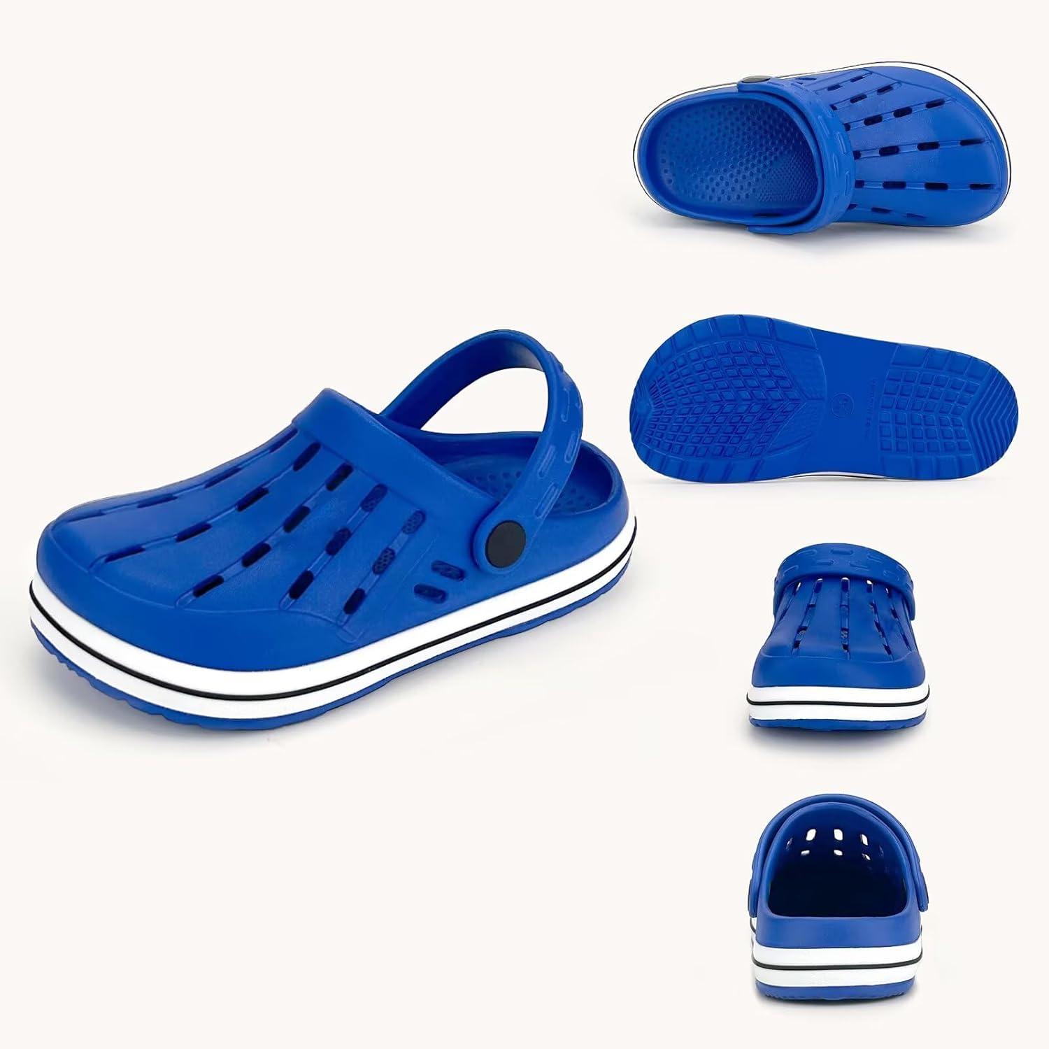 Cubufly Kids Garden Shoes Boys Girls Glitter Stripe Band Clogs Toddler Slip On Water Sandals Children Beach Pool Slipper(Klein Blue)