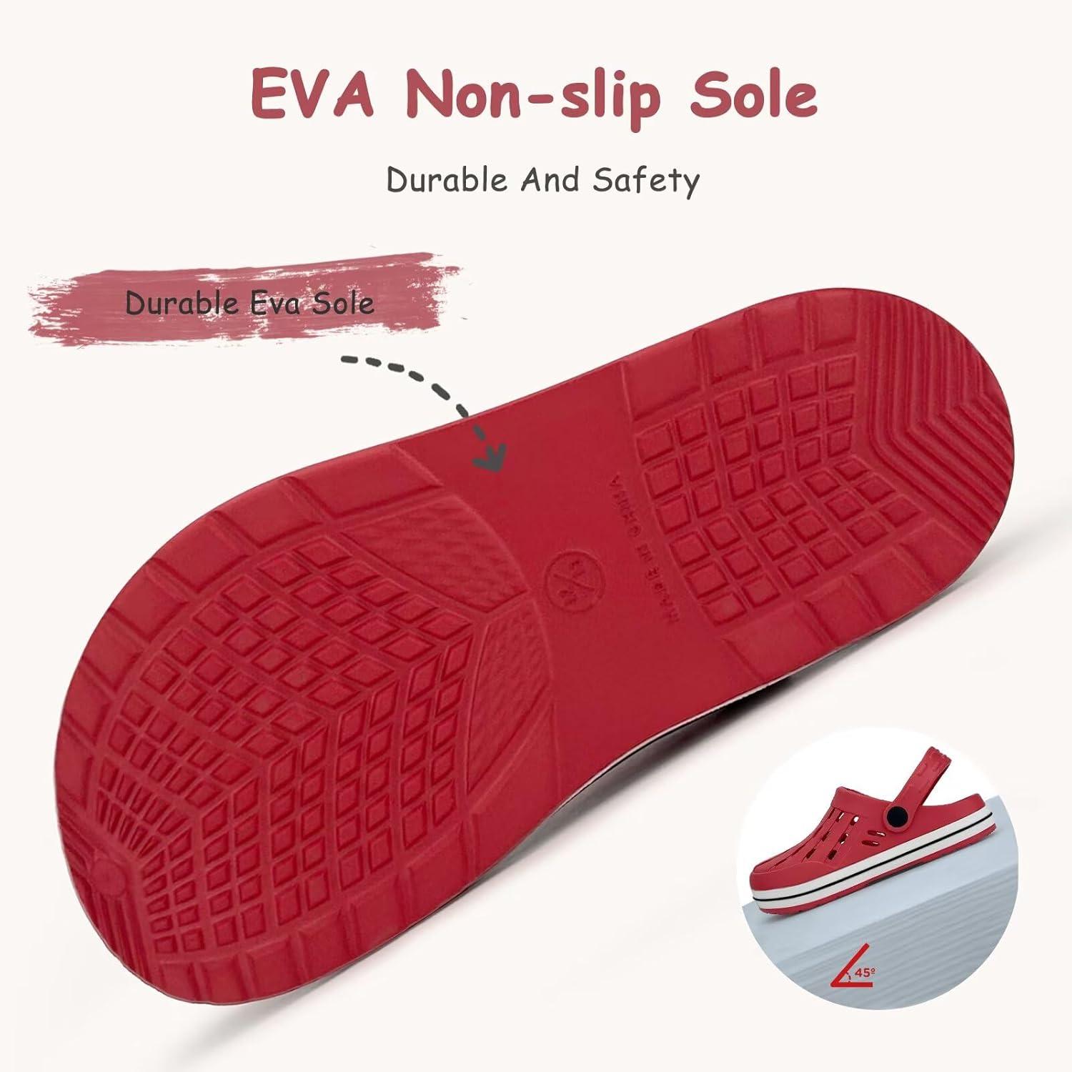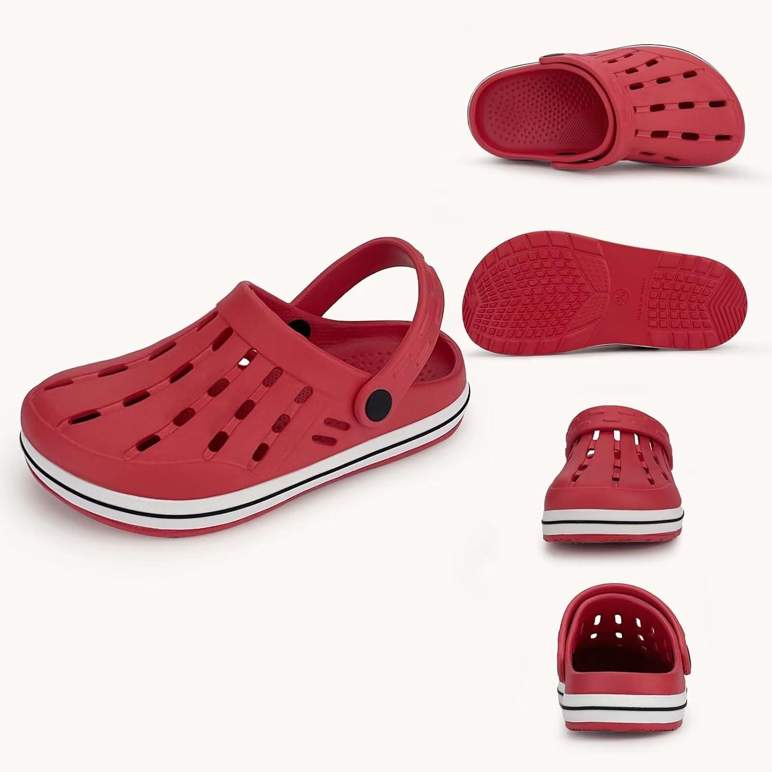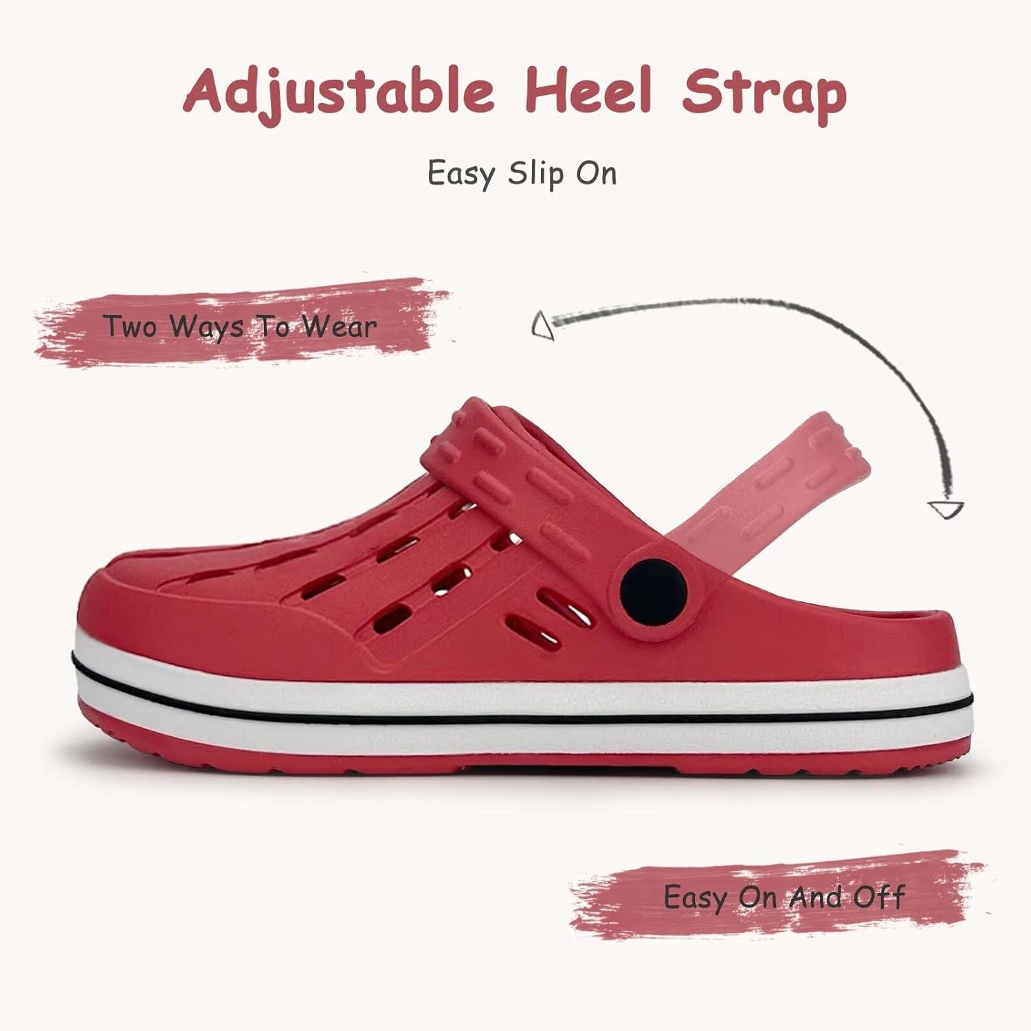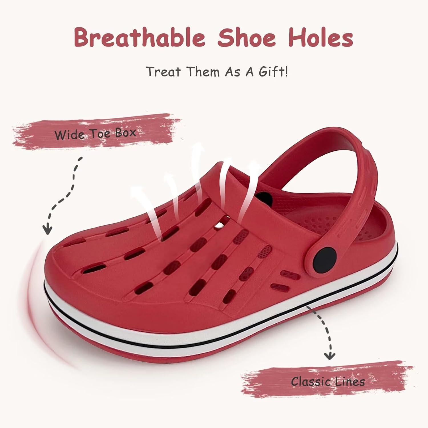 Cubufly Kids Garden Shoes Boys Girls Glitter Stripe Band Clogs Toddler Slip On Water Sandals Children Beach Pool Slipper(Red)