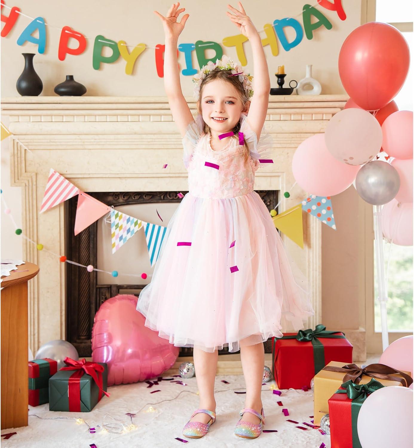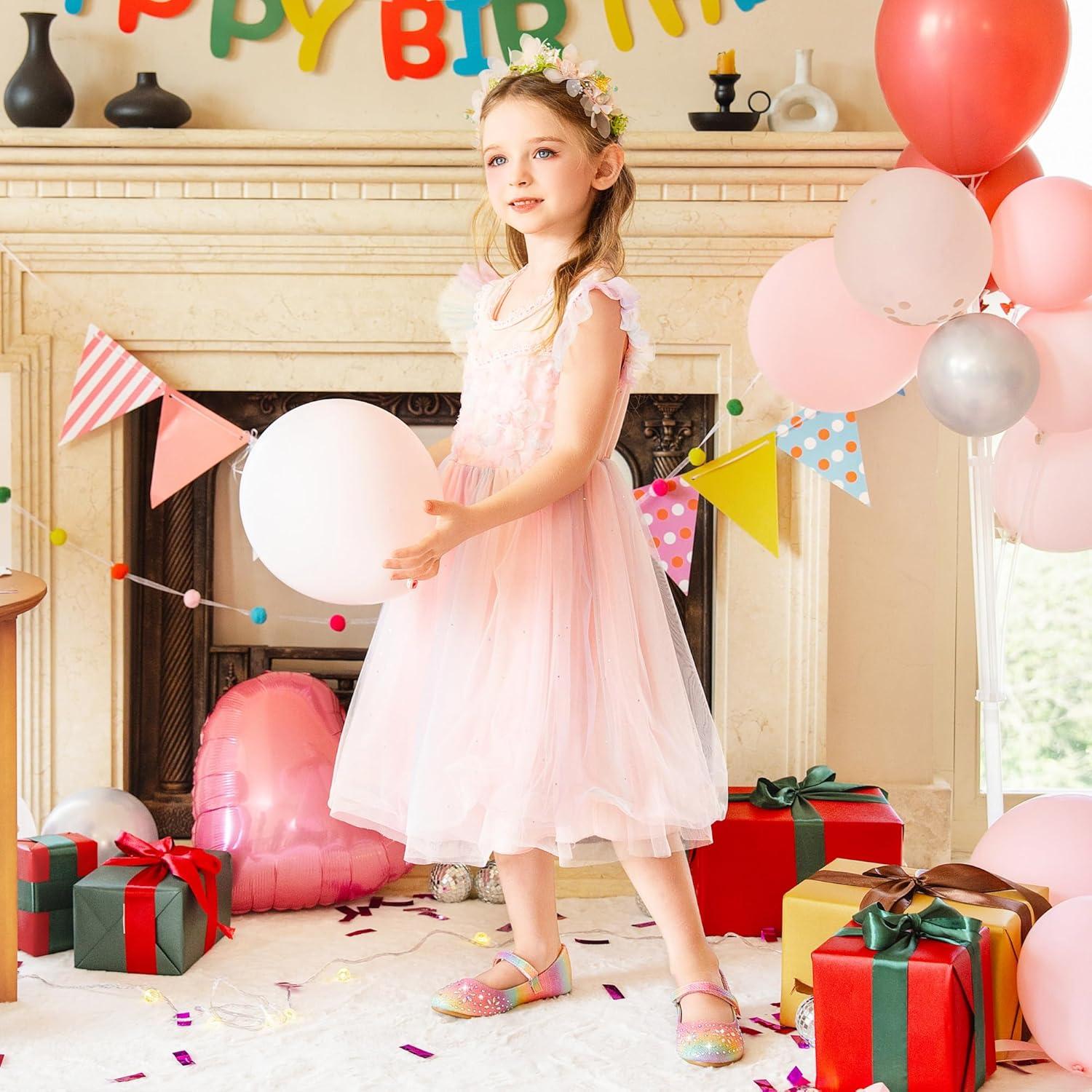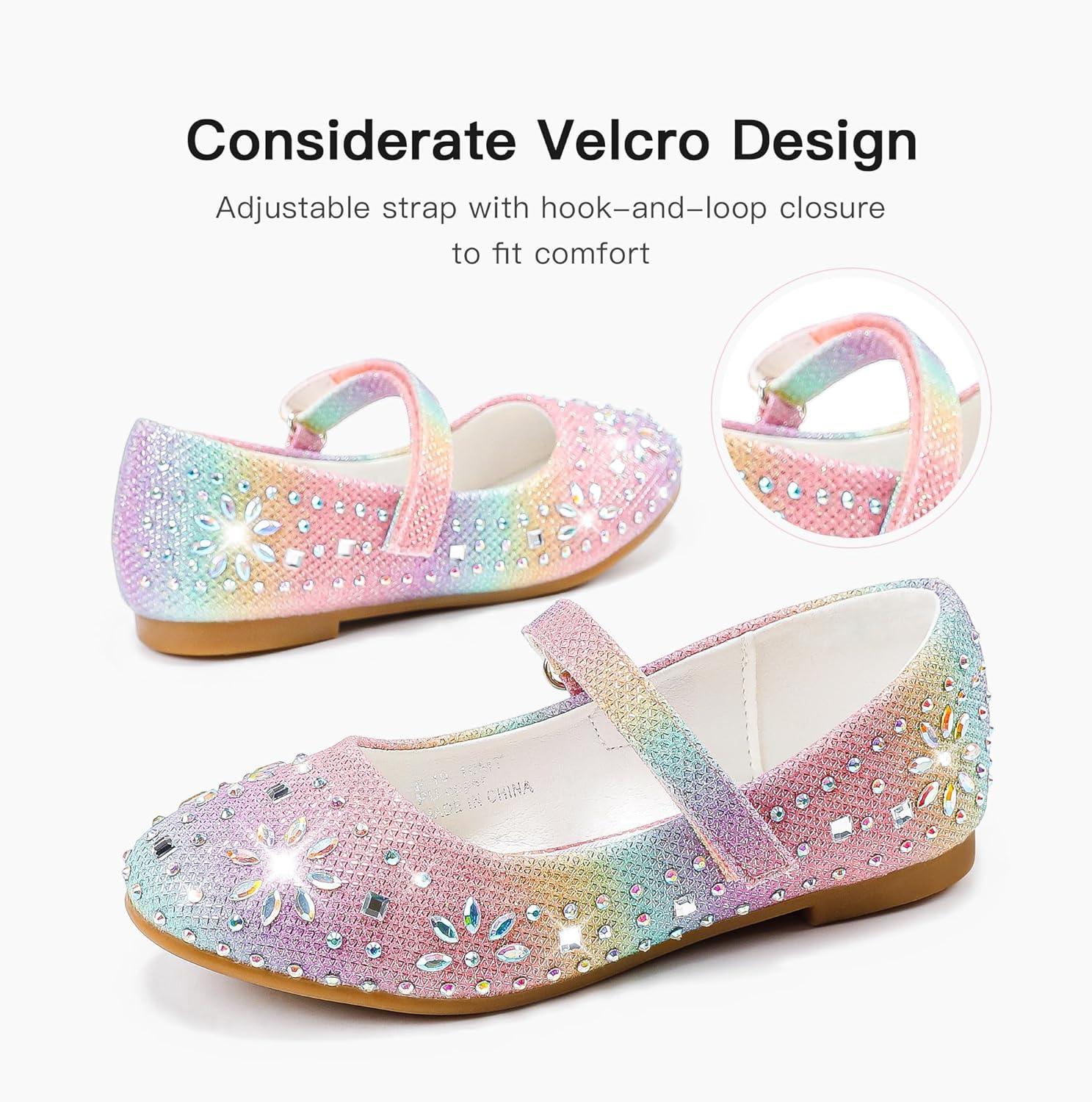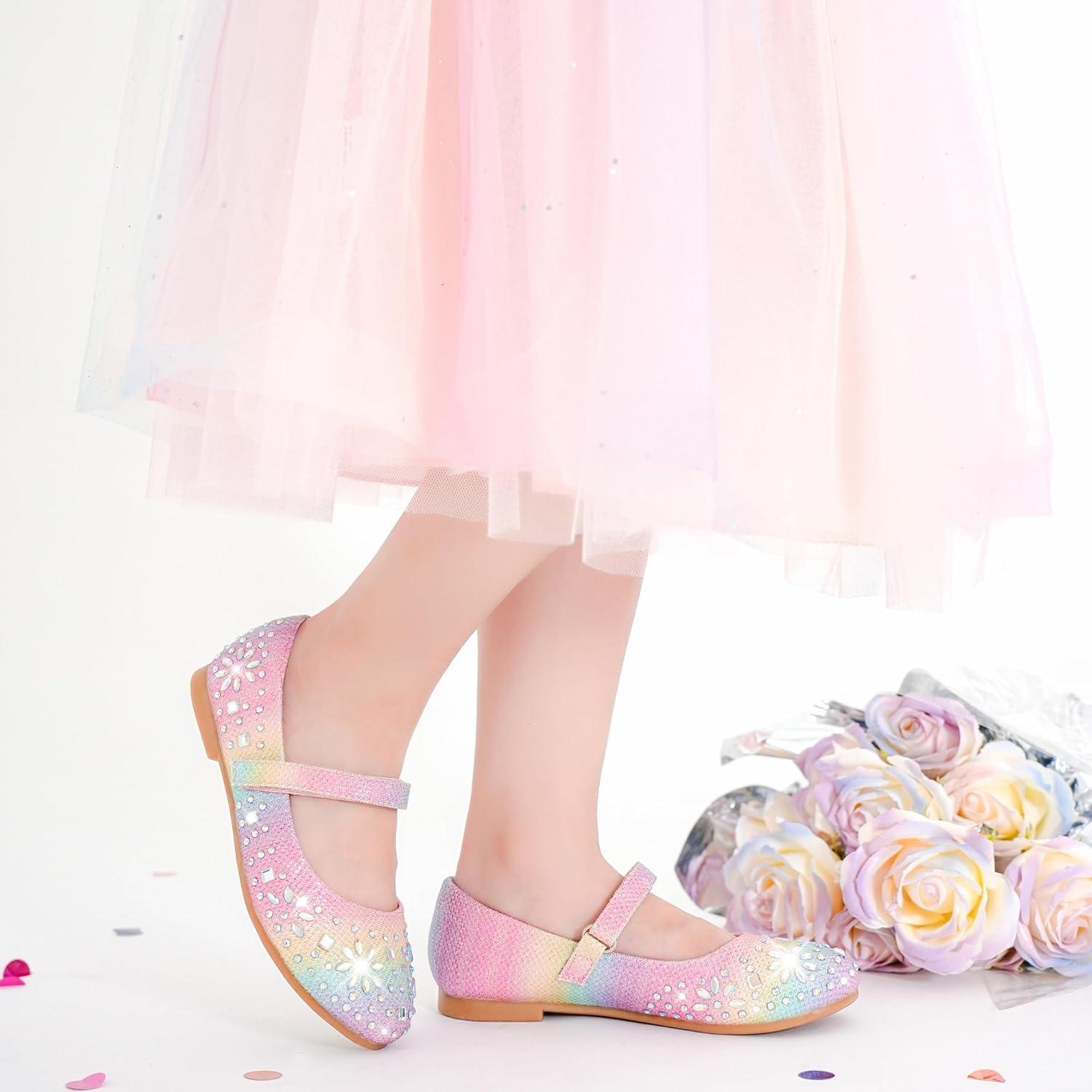 Furdeour Girls Dress Shoes Mary Jane Flower Wedding Party Bridesmaids Shoes Glitter Princess Ballet Flats for Kid Toddler(19-rainbow)