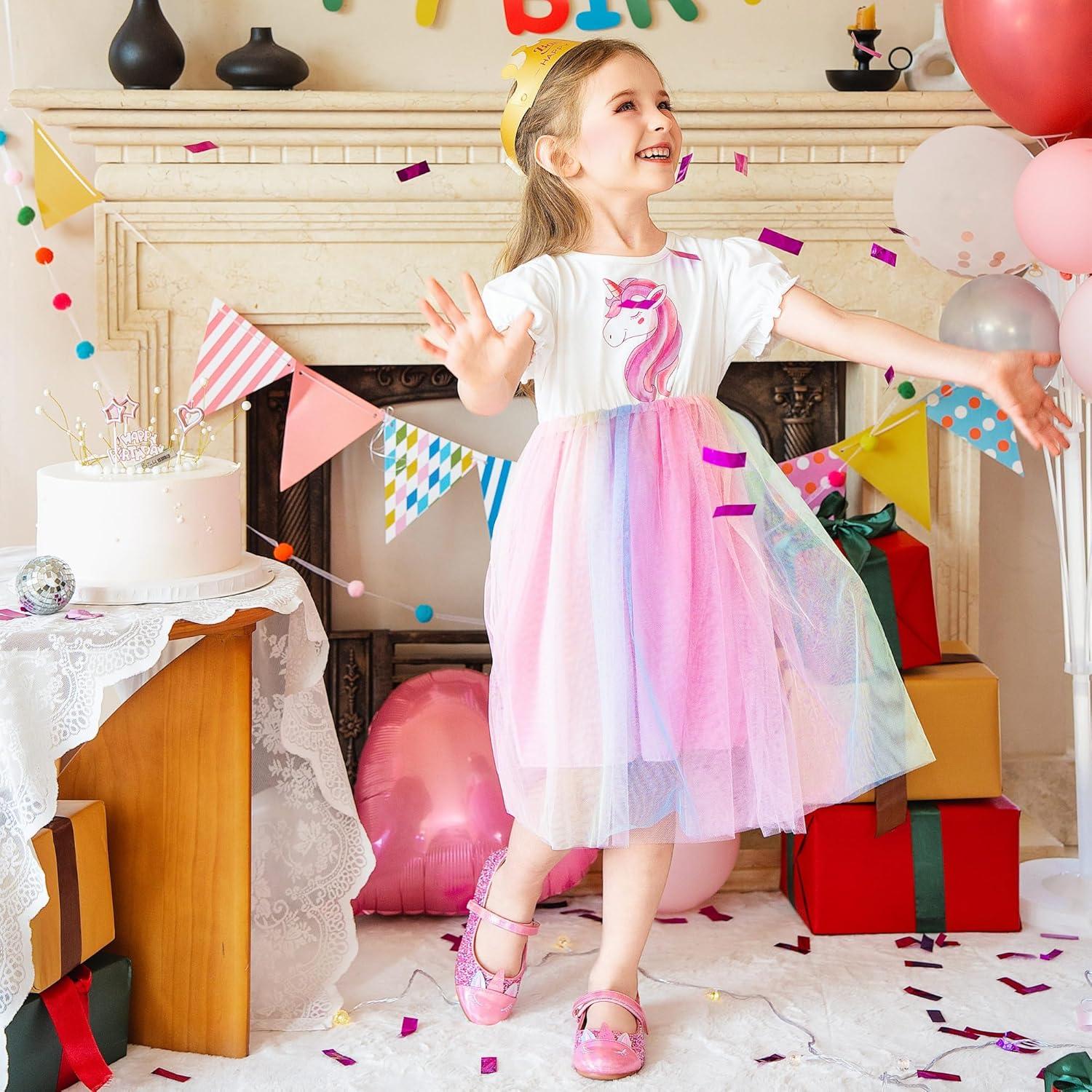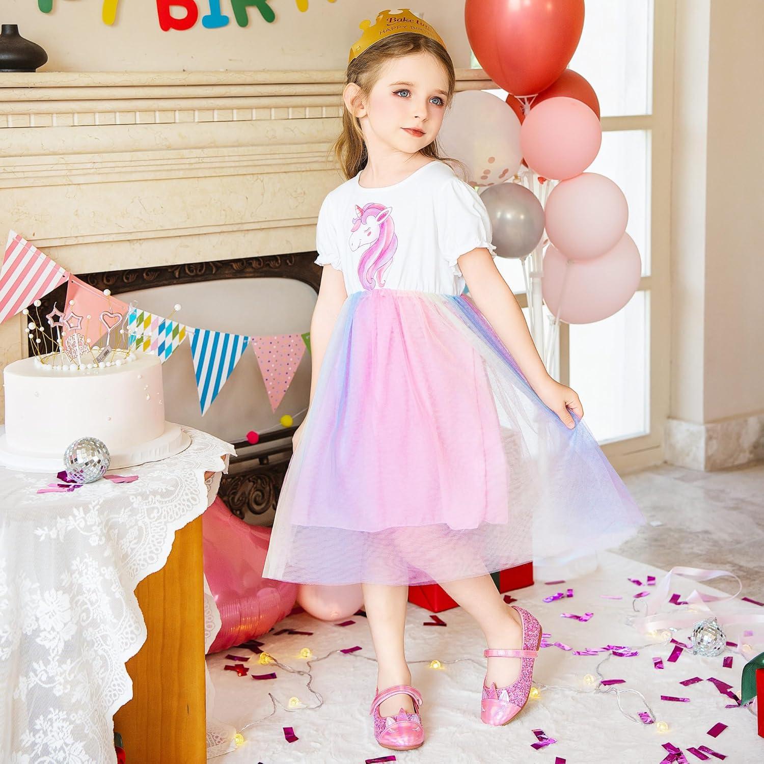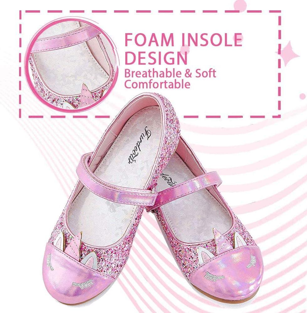 Furdeour Girls Dress Shoes Mary Jane Flower Wedding Party Bridesmaids Shoes Glitter Princess Ballet Flats for Kid Toddler(Unicorn-pink)