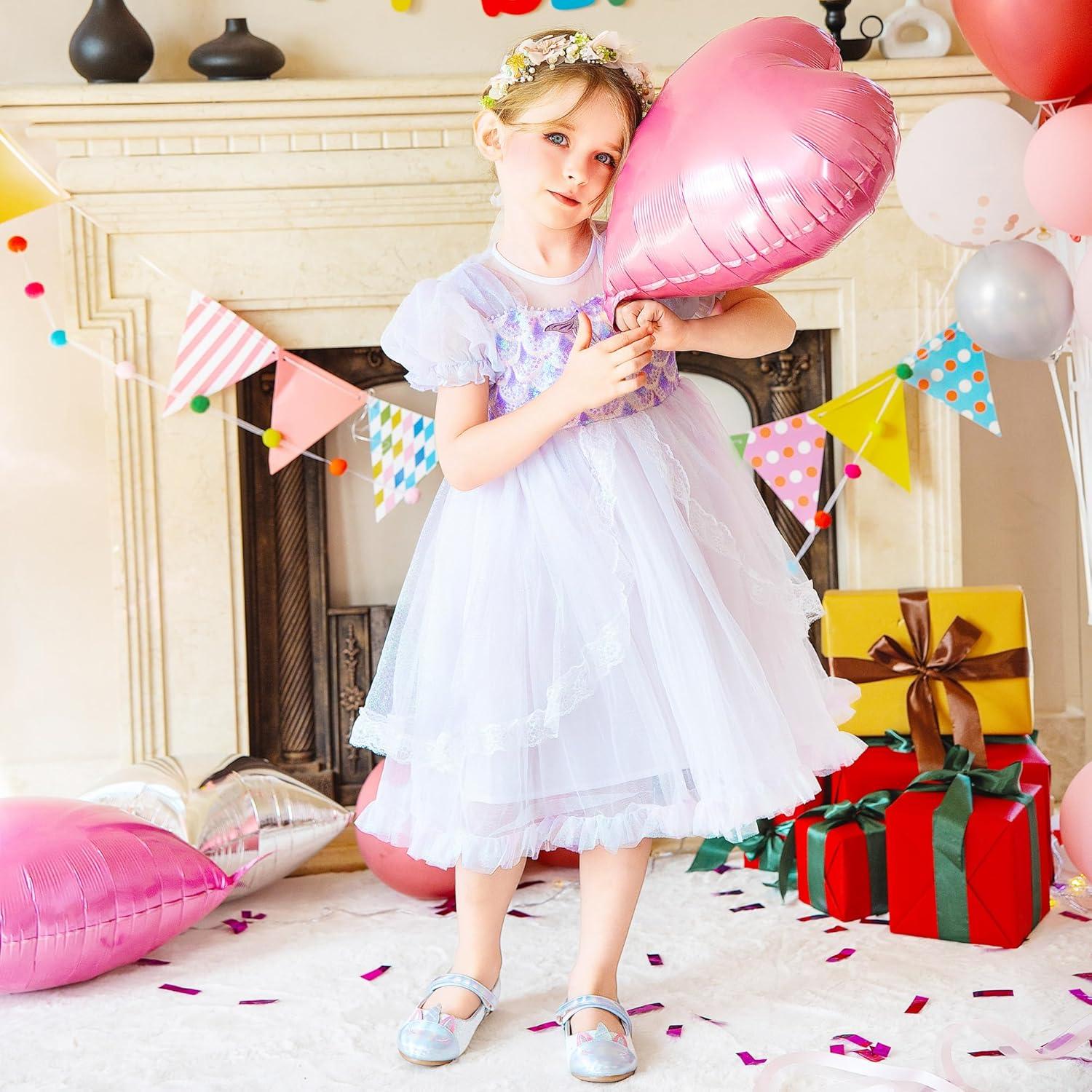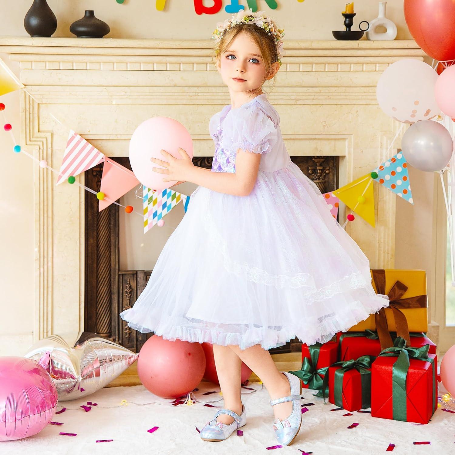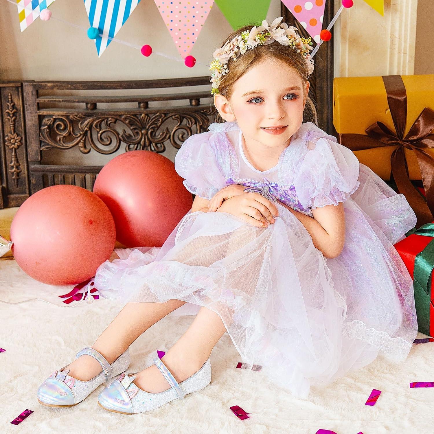Furdeour Girls Dress Shoes Mary Jane Flower Wedding Party Bridesmaids Shoes Glitter Princess Ballet Flats for Kid Toddler(Unicorn-white)