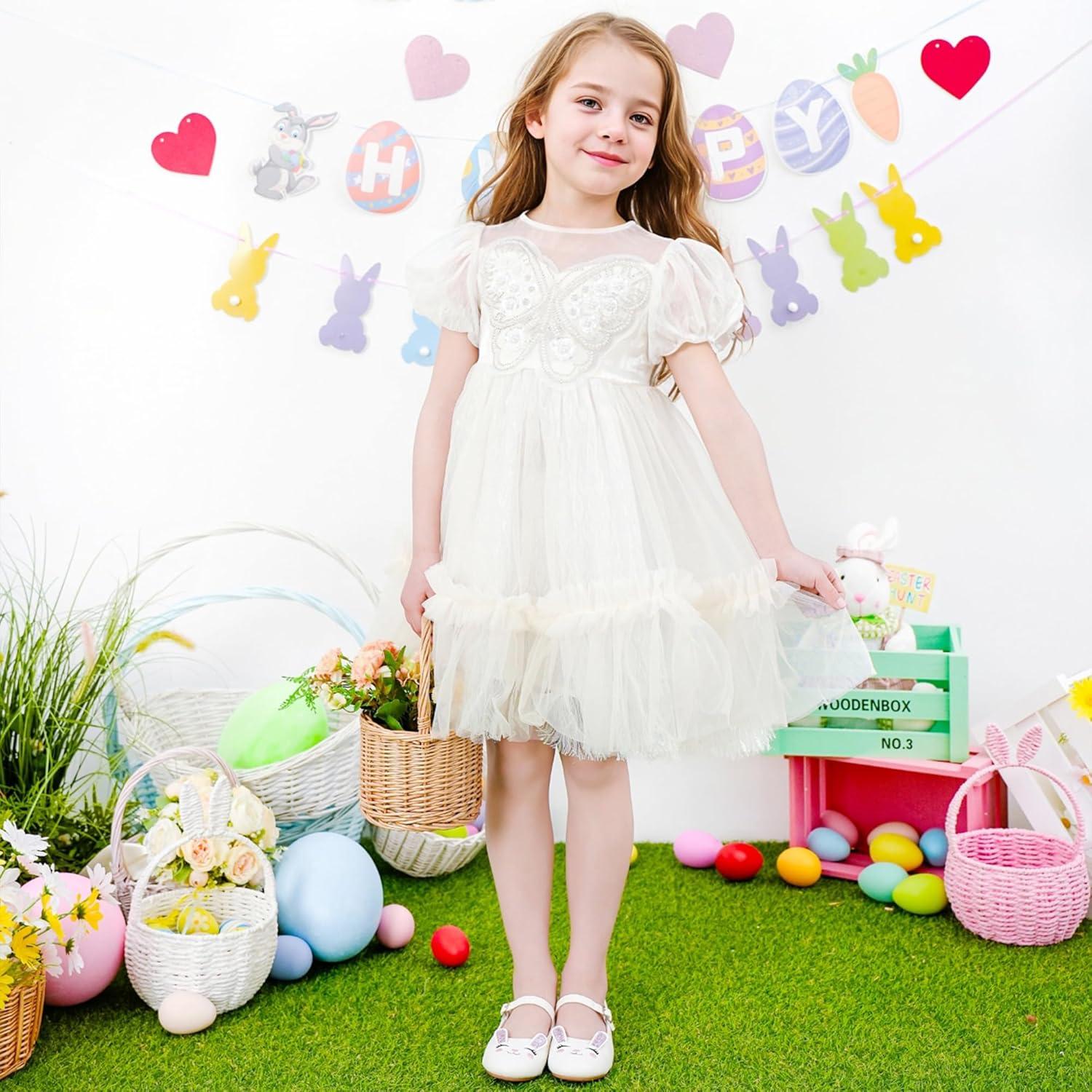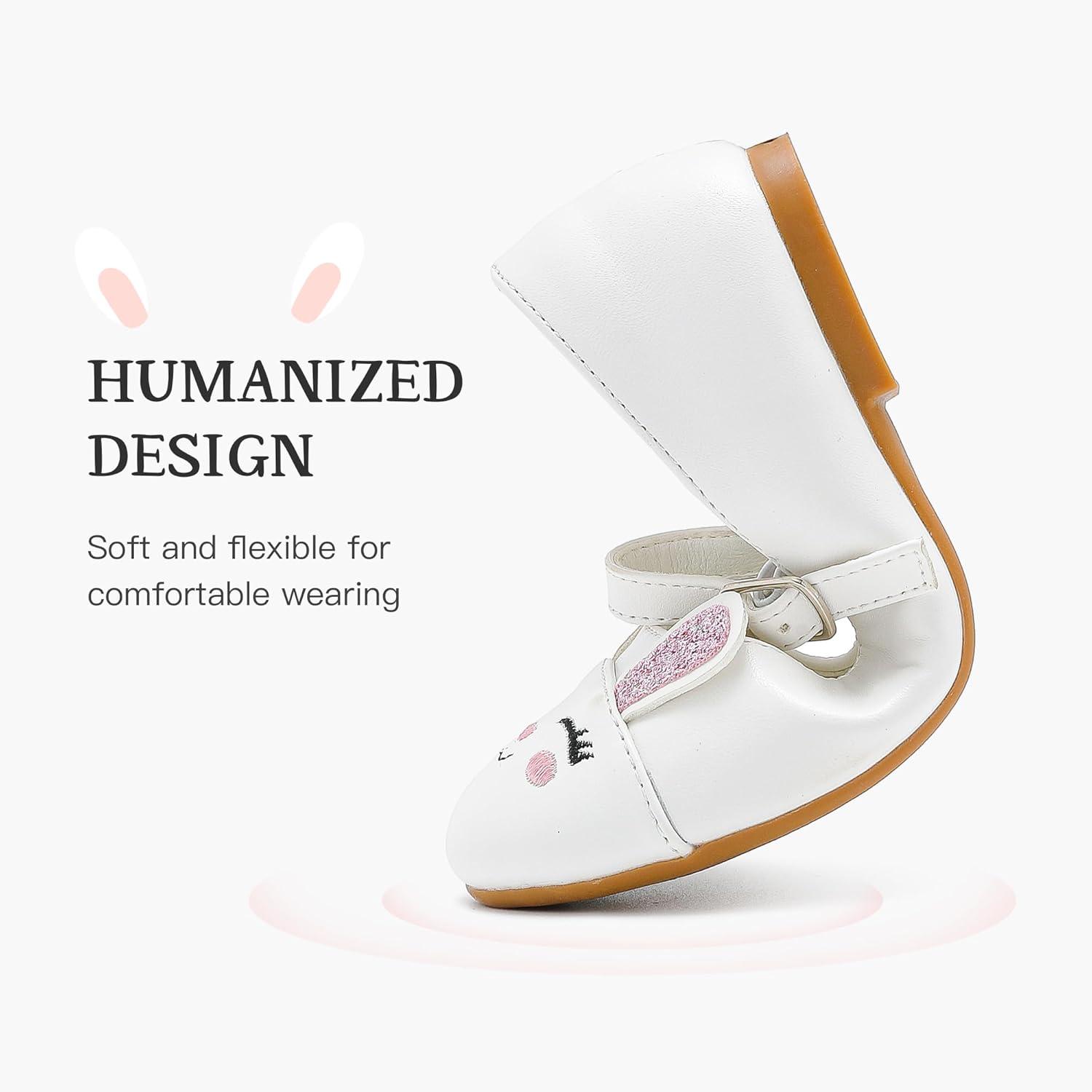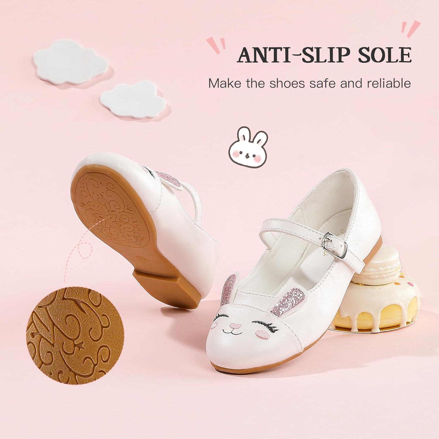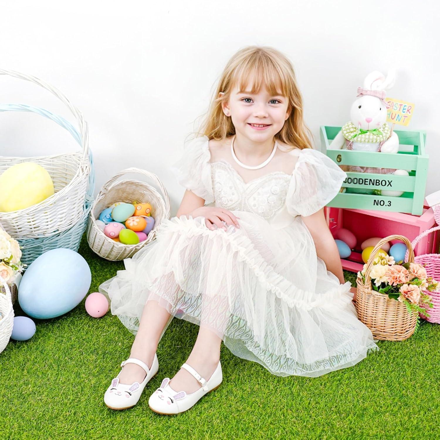 Furdeour Girls Dress Shoes Mary Jane Flower Wedding Party Bridesmaids Shoes Glitter Princess Ballet Flats for Kid Toddler(White Bunny)