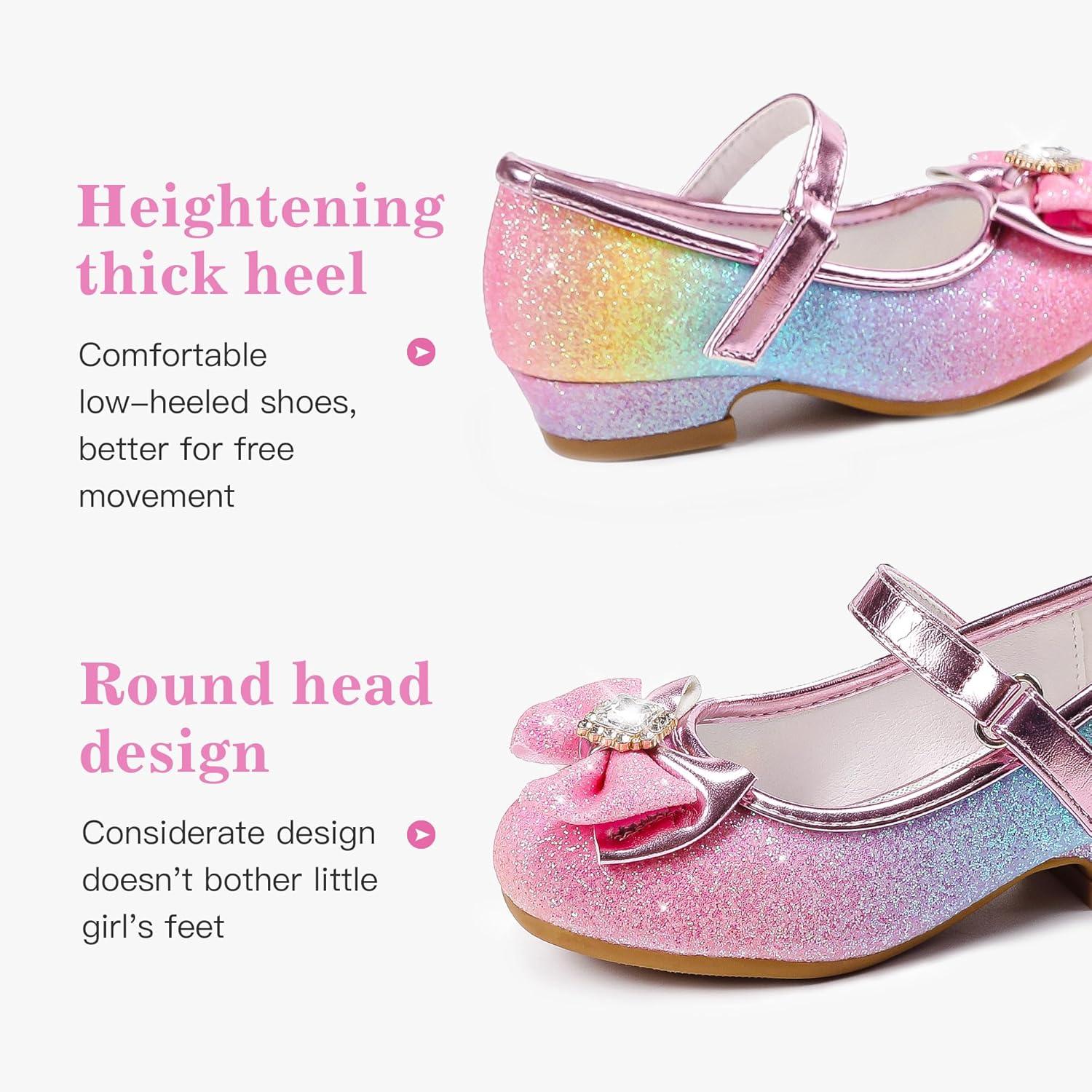 Furdeour Girls Dress Shoes Mary Jane Wedding Flower Bridesmaids Heels Glitter Princess Shoes for Kids Toddler(Rainbow)