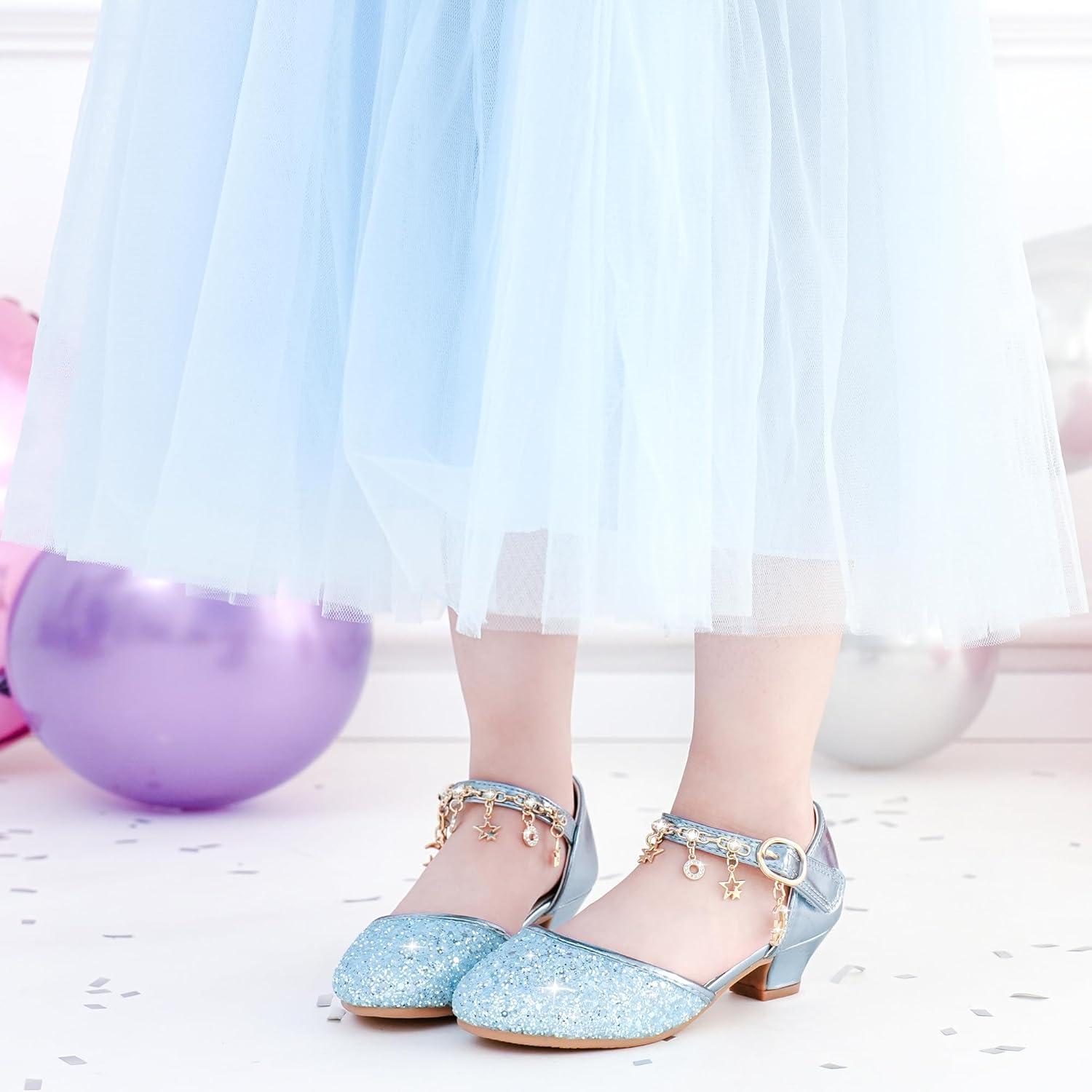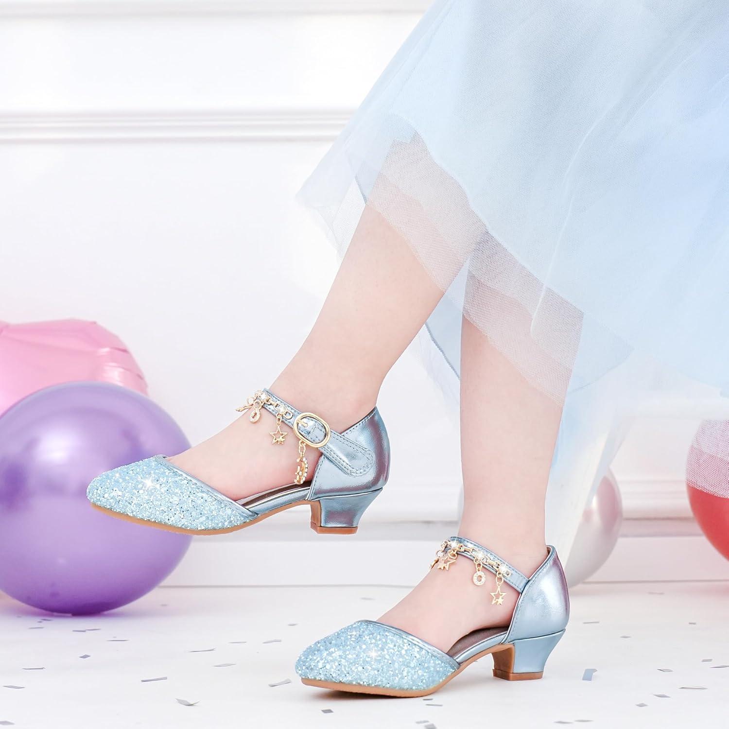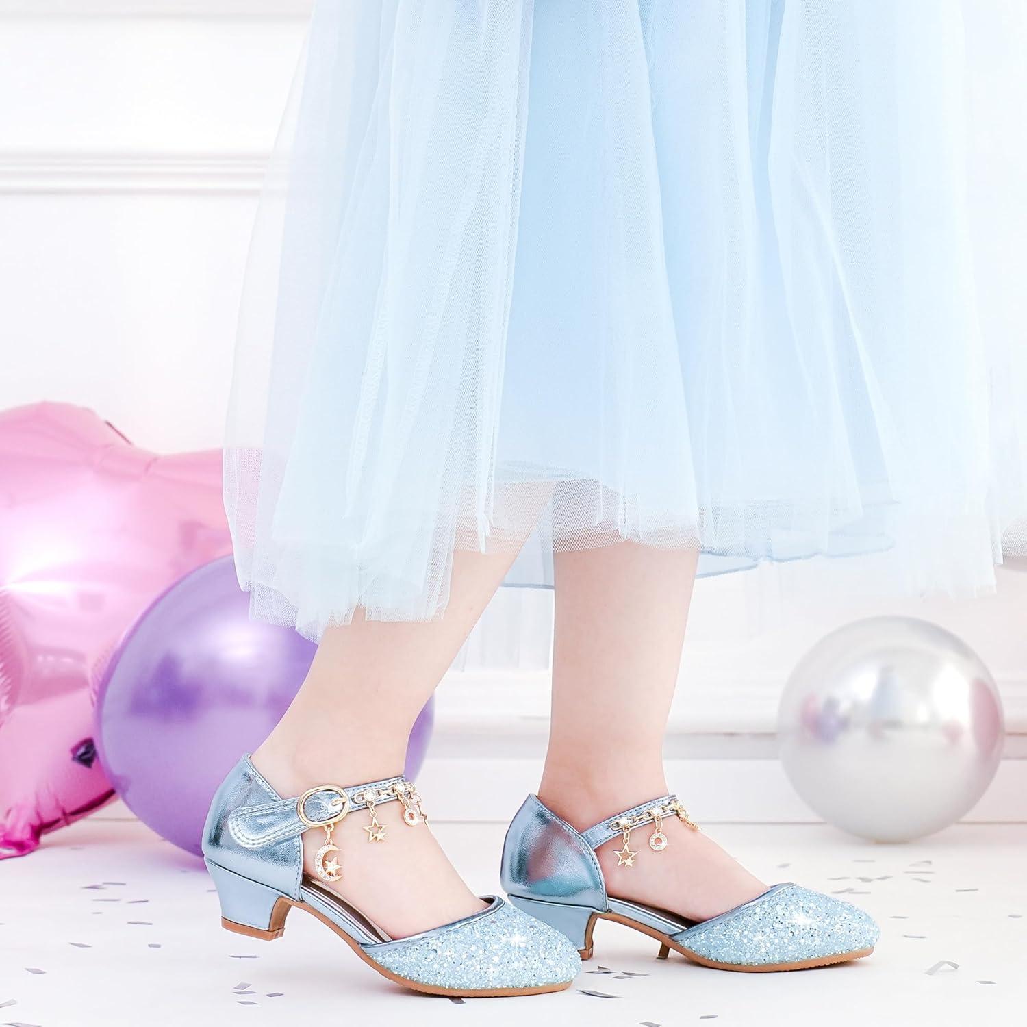Furdeour Girls Dress Shoes Princess Crystal High Heels Closed Toe Party Wedding Flower Girls Shoes Toddler Little Big Kid(Lightblue)