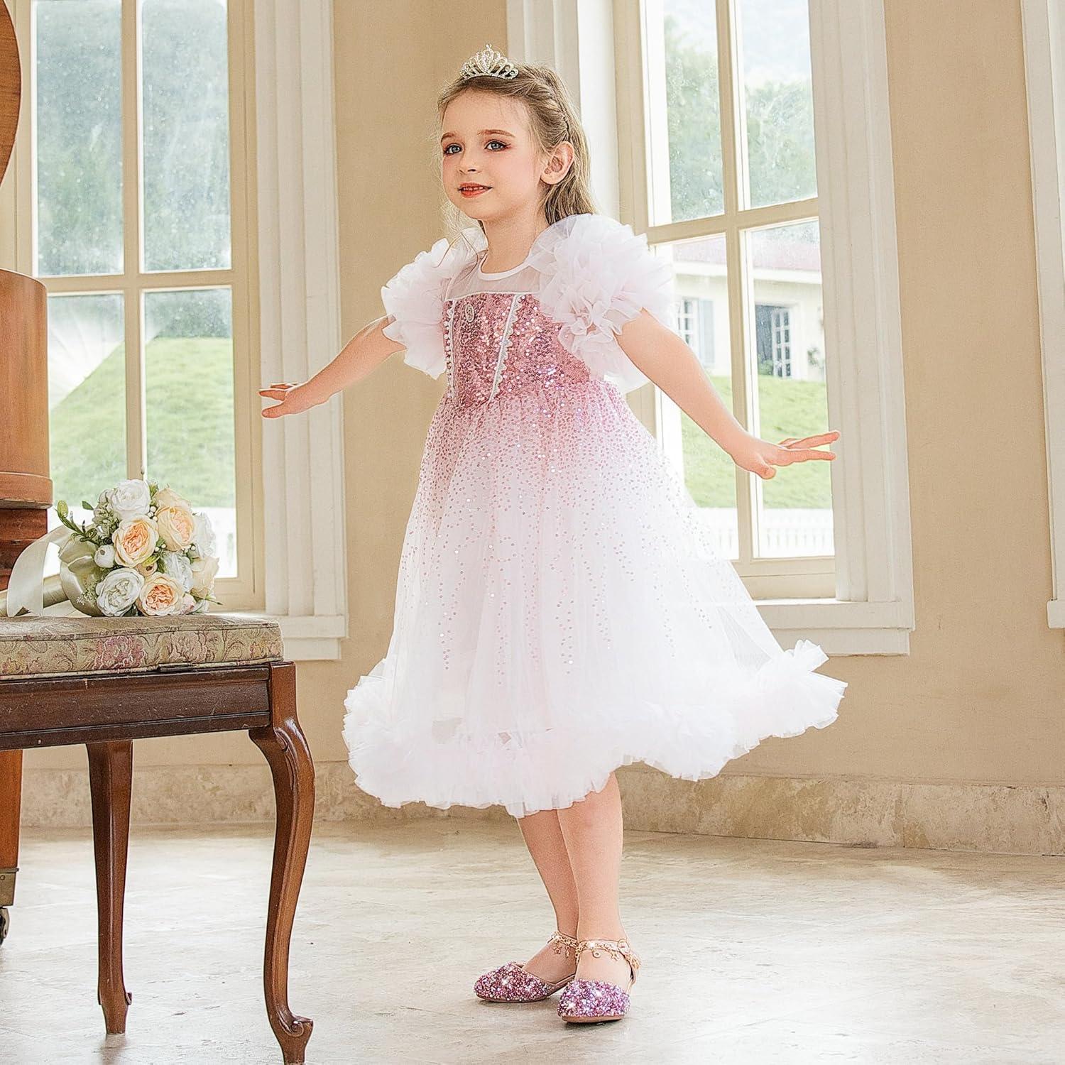 Furdeour Girls Dress Shoes Princess Crystal High Heels Closed Toe Party Wedding Flower Girls Shoes Toddler Little Big Kid(Pinksequins)