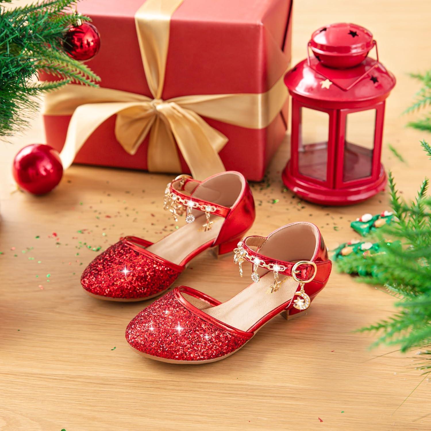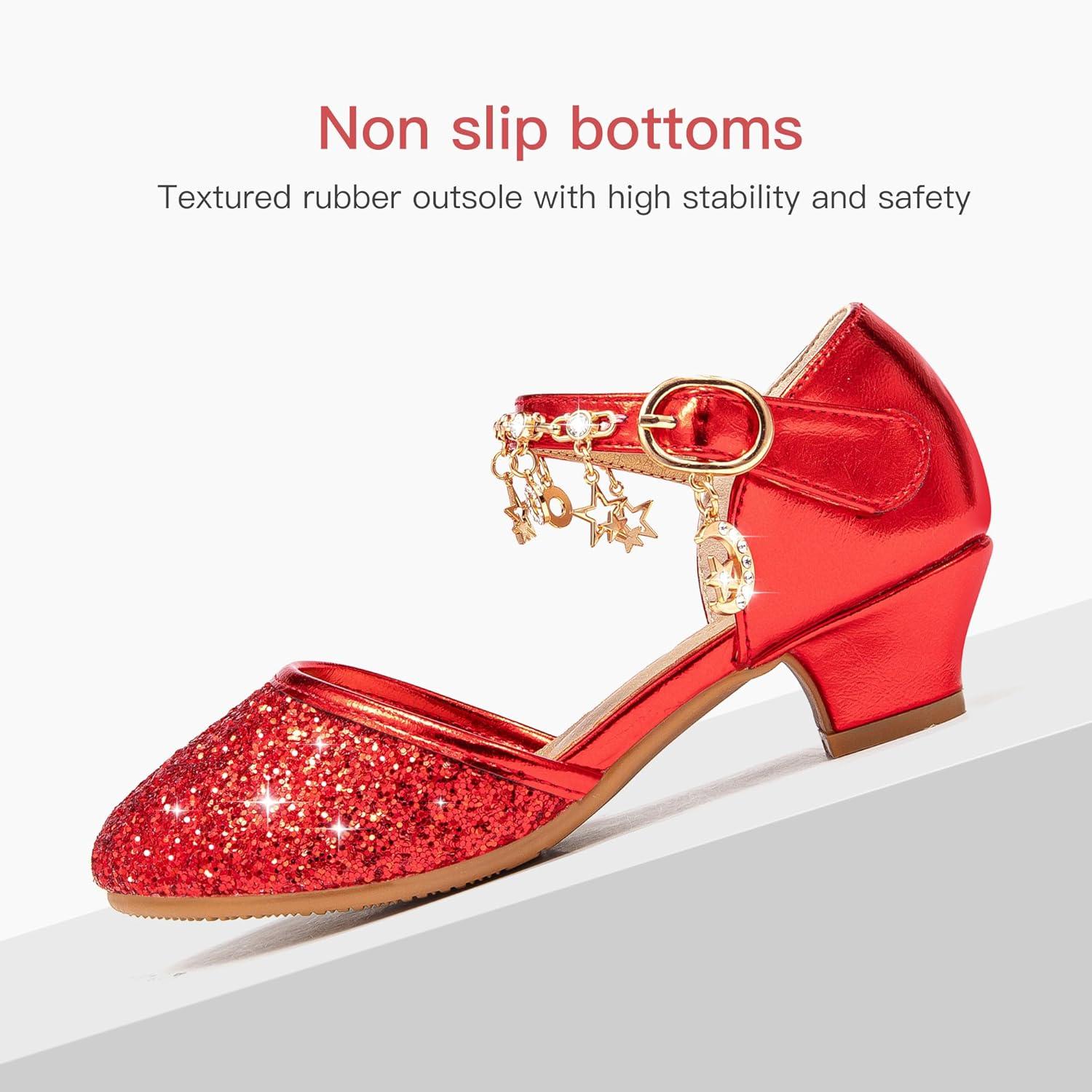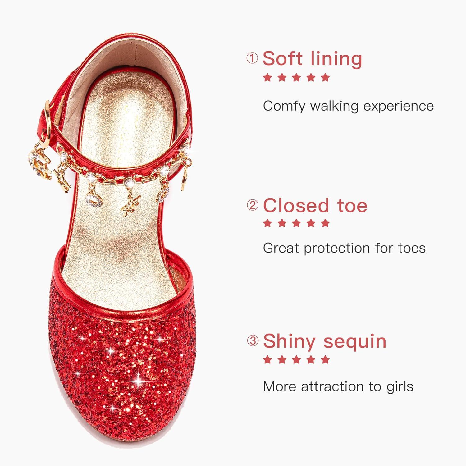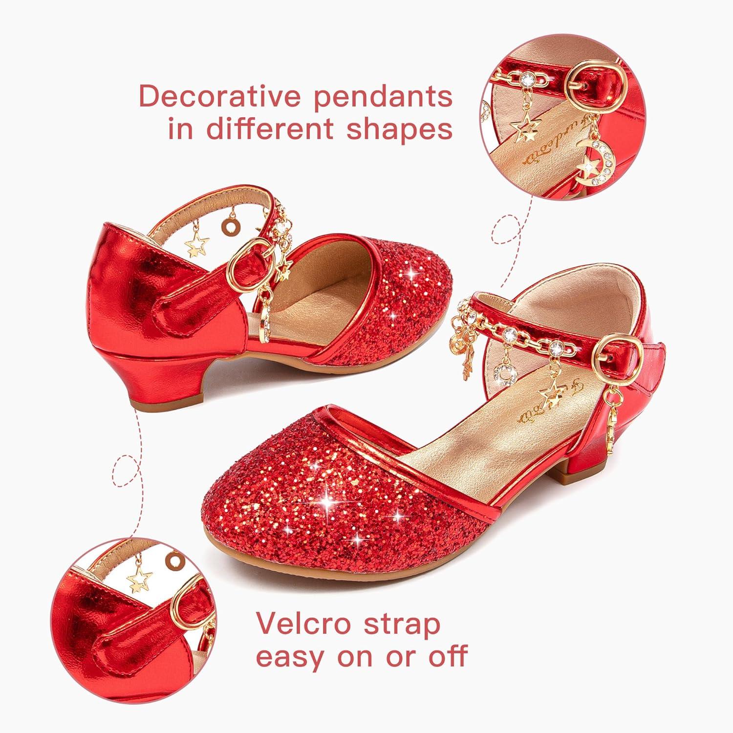 Furdeour Girls Dress Shoes Princess Crystal High Heels Closed Toe Party Wedding Flower Girls Shoes Toddler Little Big Kid(Red)