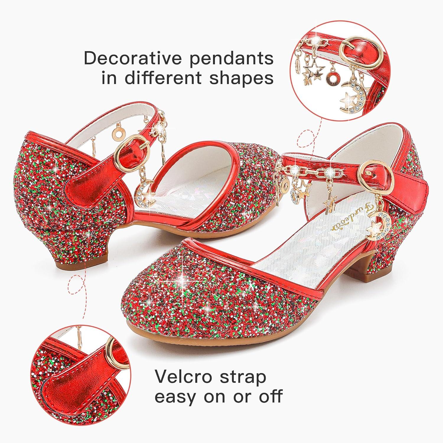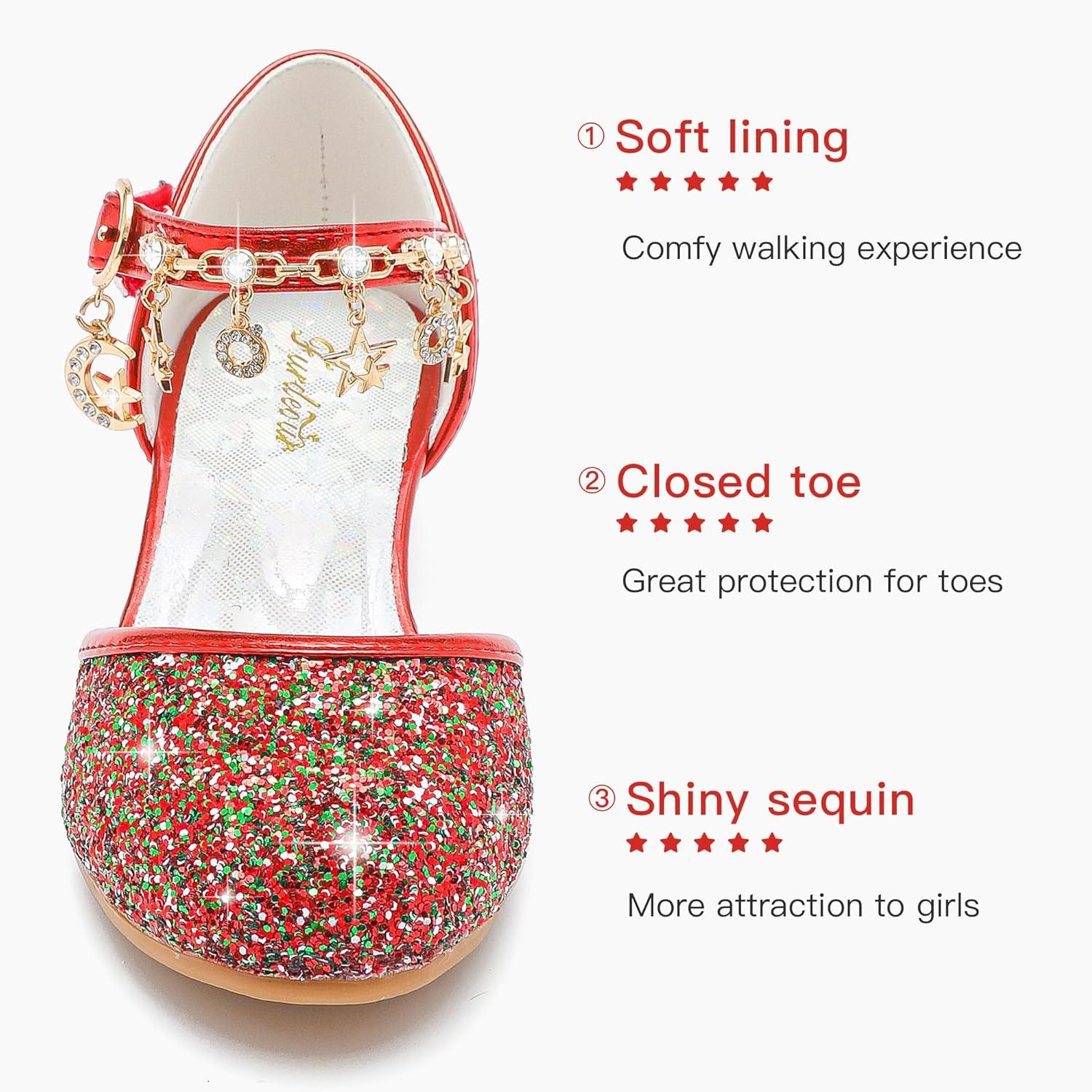 Score big savings on Furdeour Girls Dress Shoes Princess Crystal High Heels Closed Toe Party Wedding Flower Girls Shoes Toddler Little Big Kid(Redchristmas) during our back-to-school sale. Limited quantities available.