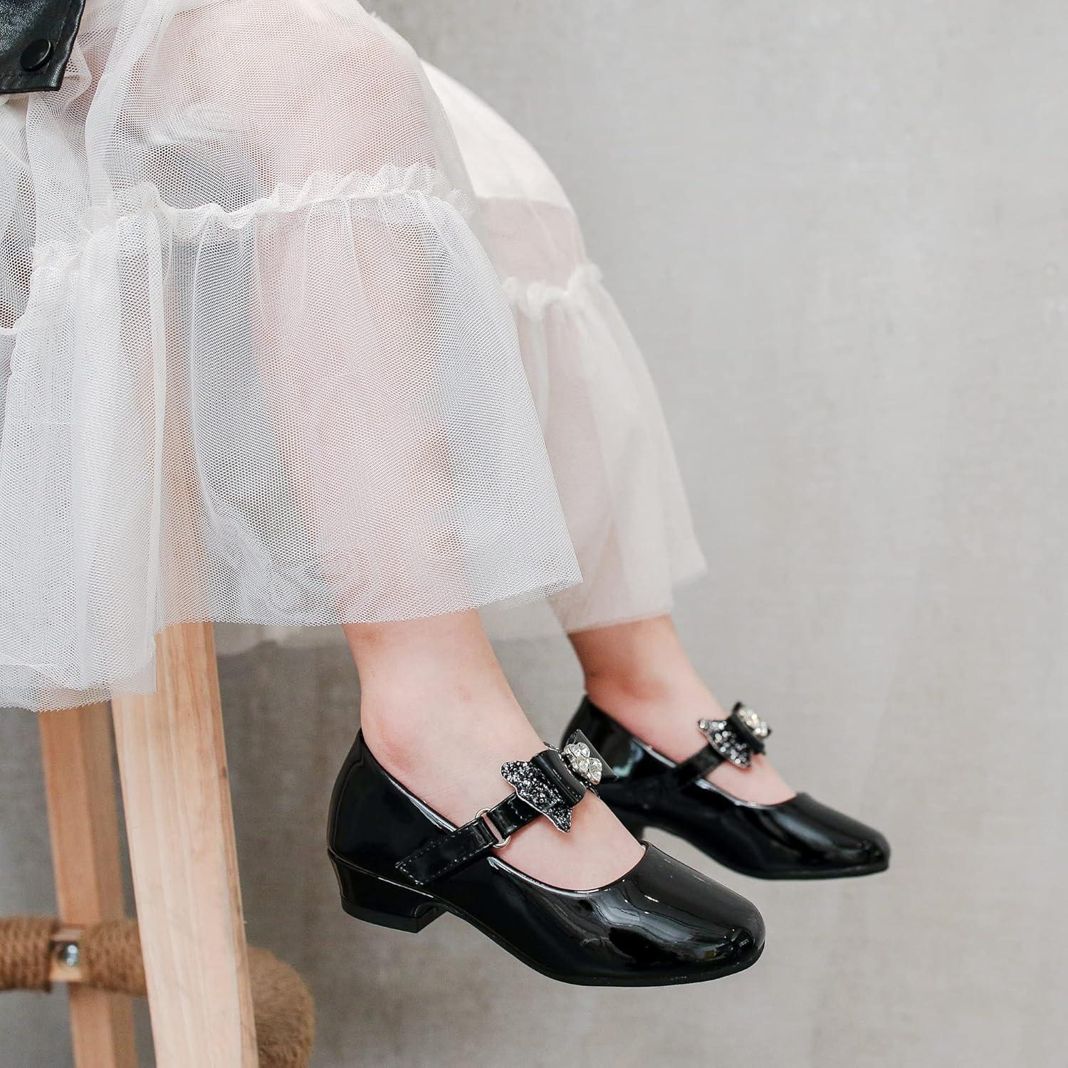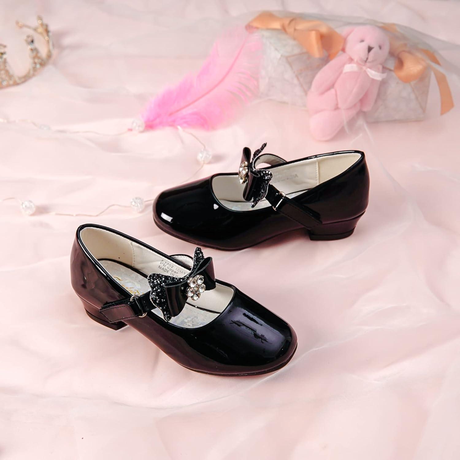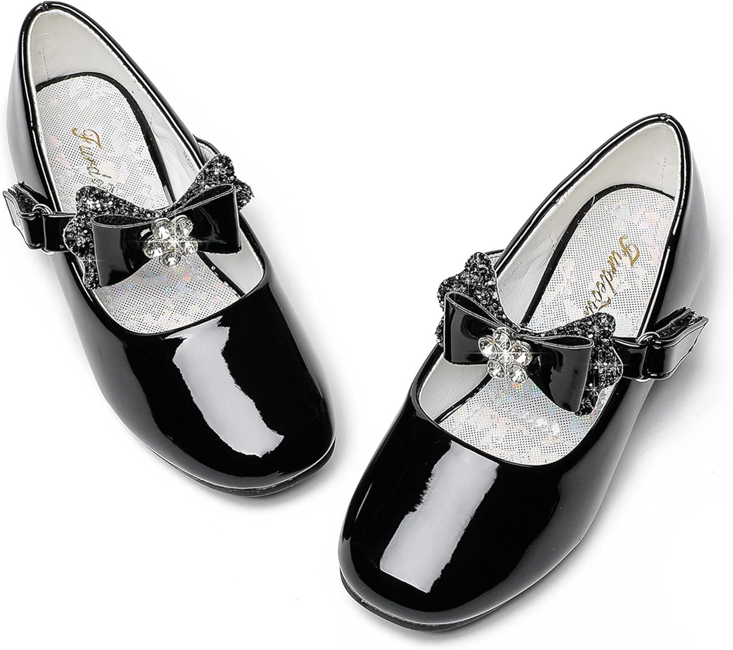 Furdeour Toddler Girls Mary Janes Shoes Low Heel Ballet Flats Wedding Party Dress Shoes for Kids(Bow Black)