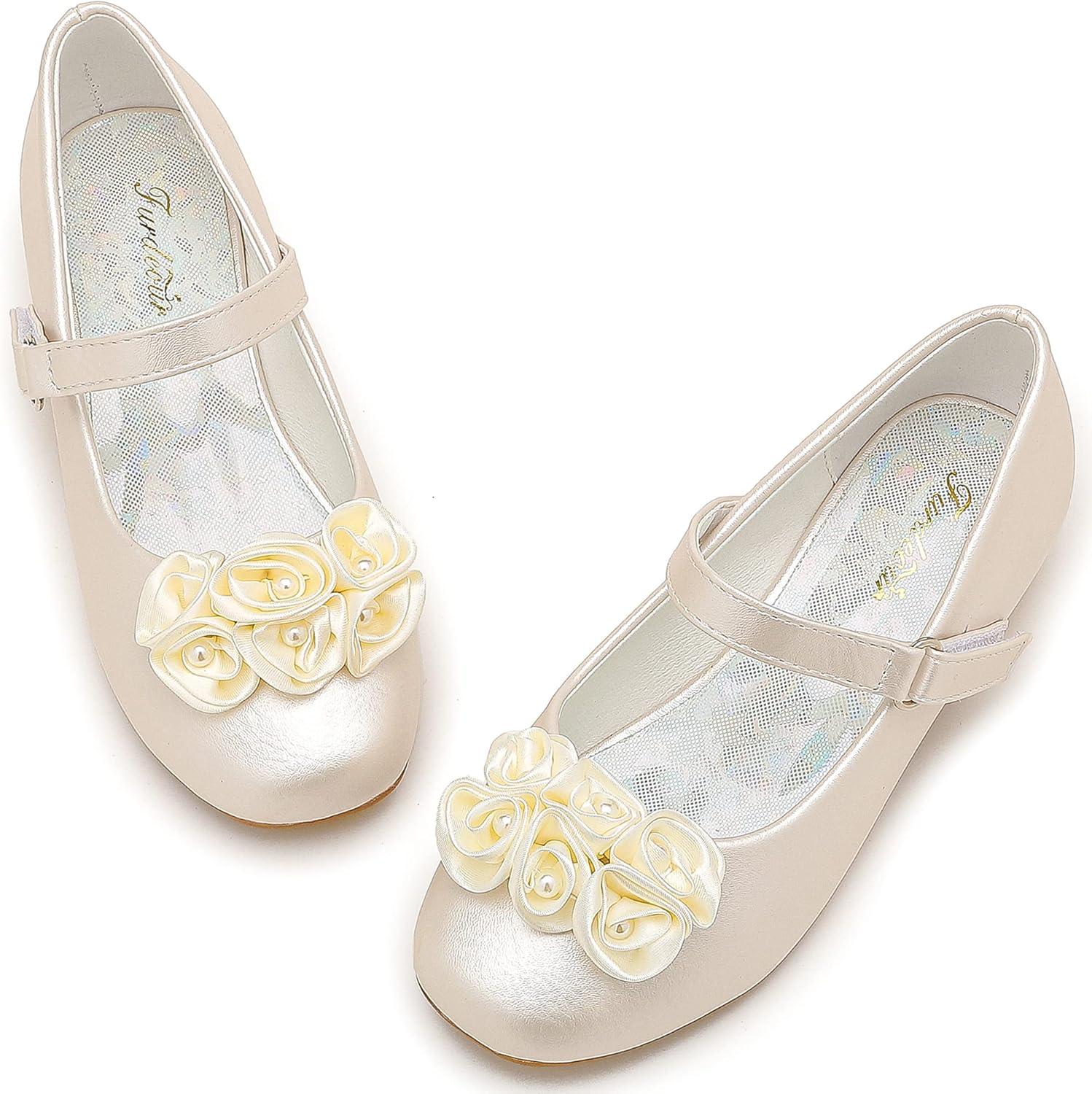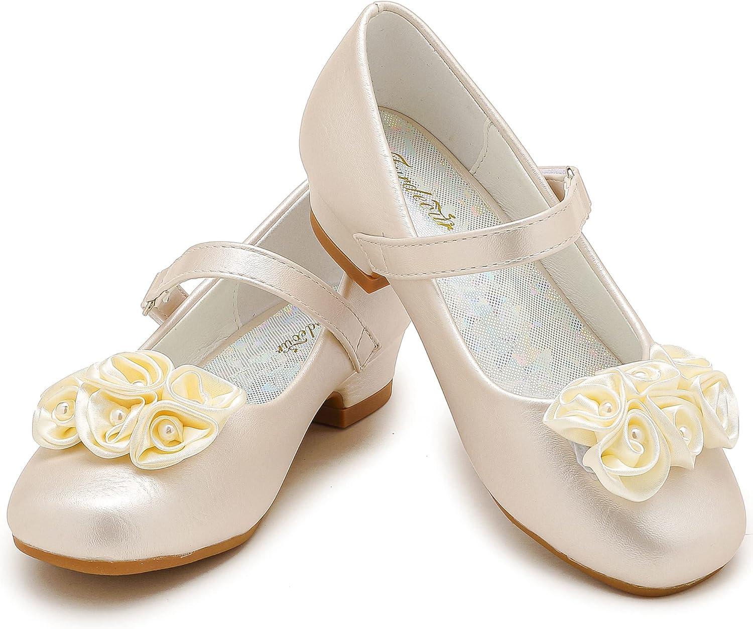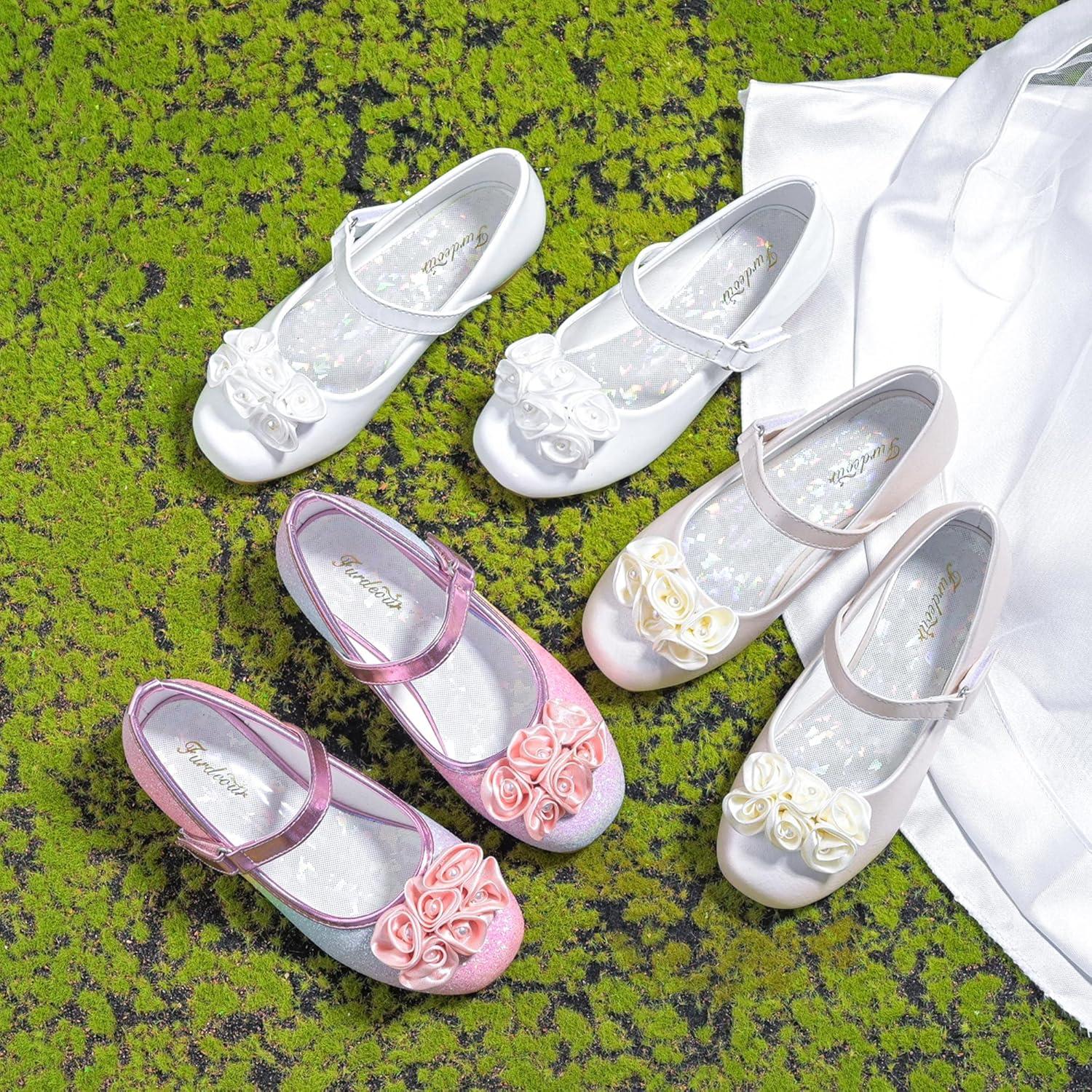 Furdeour Toddler Girls Mary Janes Shoes Low Heel Ballet Flats Wedding Party Dress Shoes for Kids(Floral Cham)