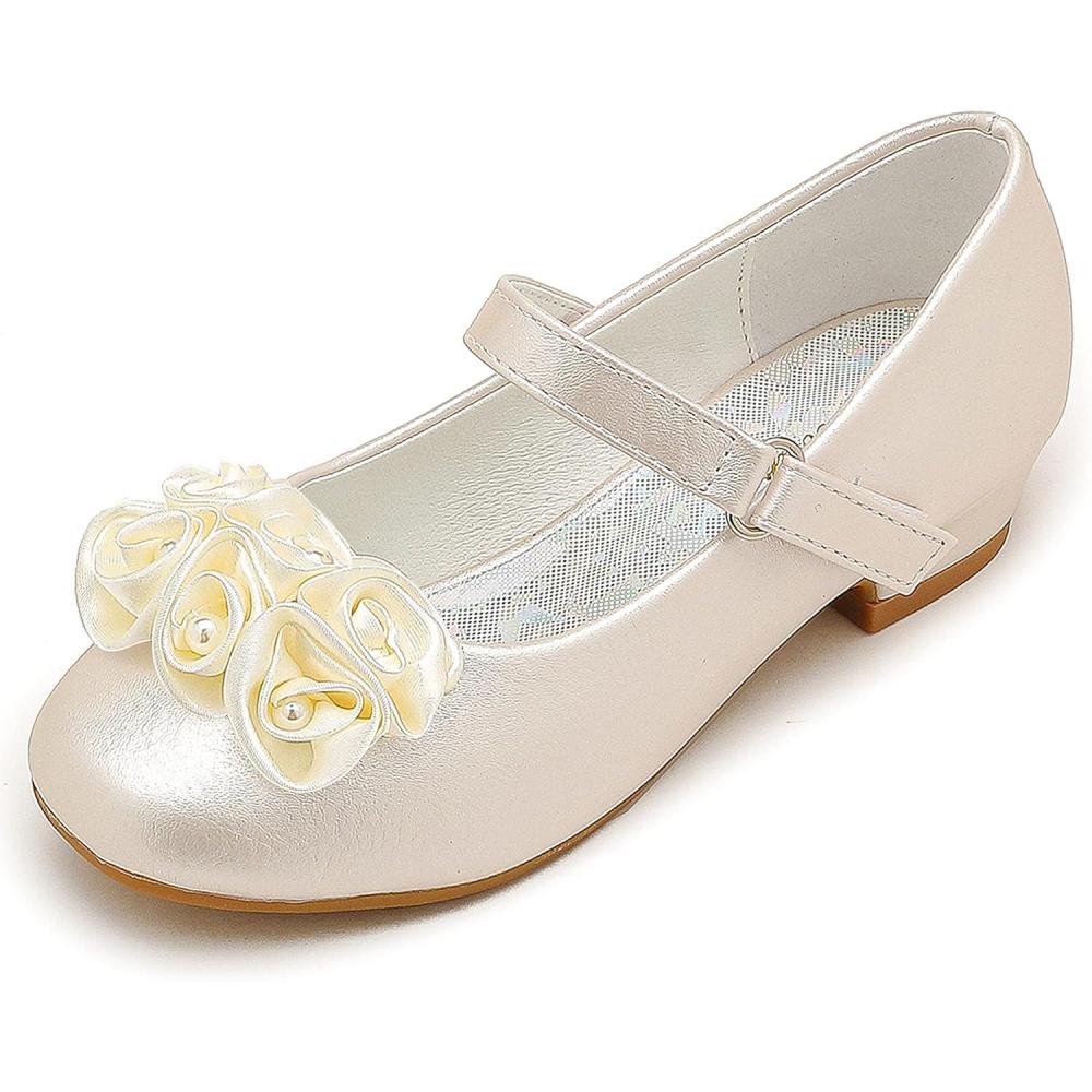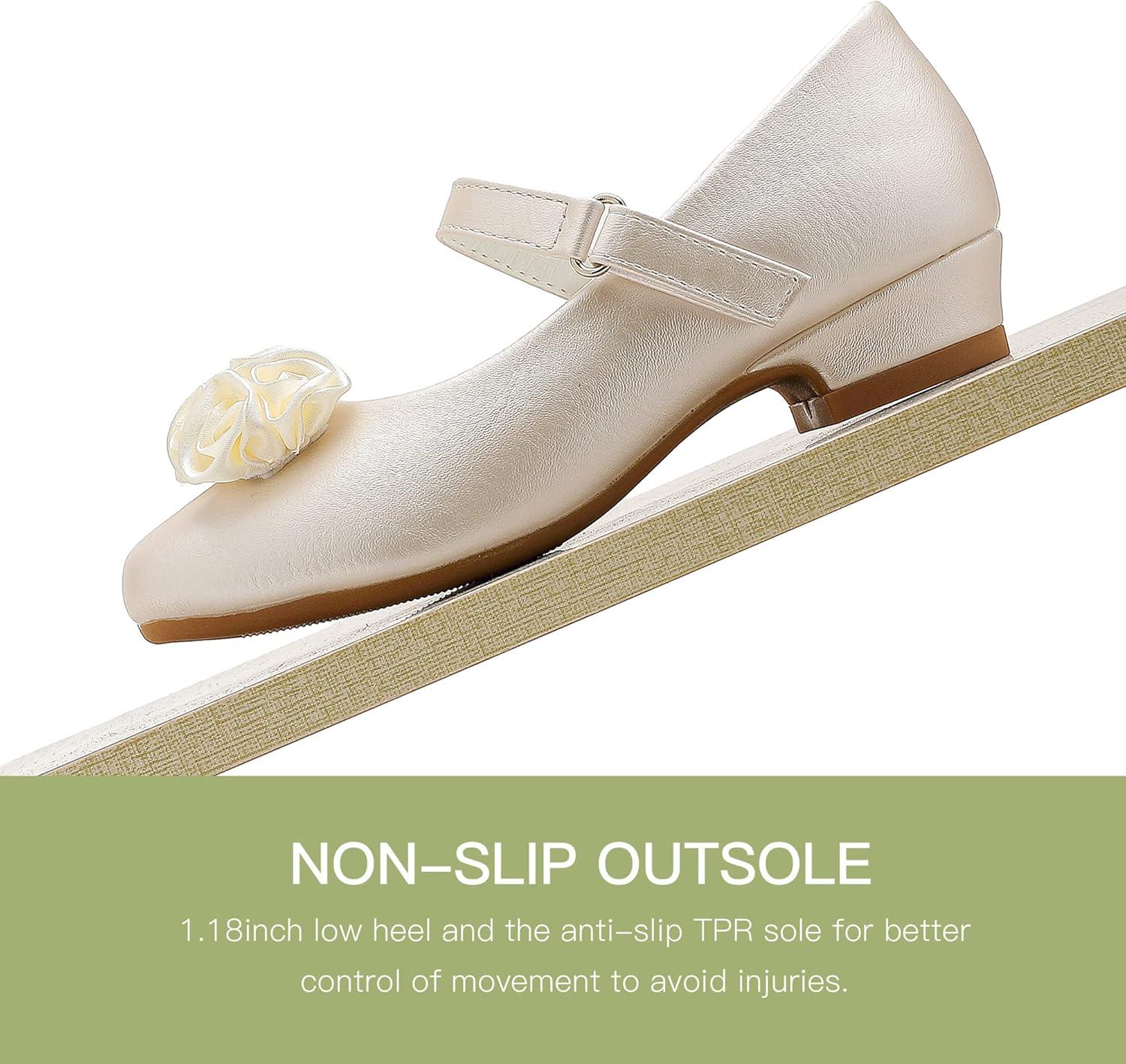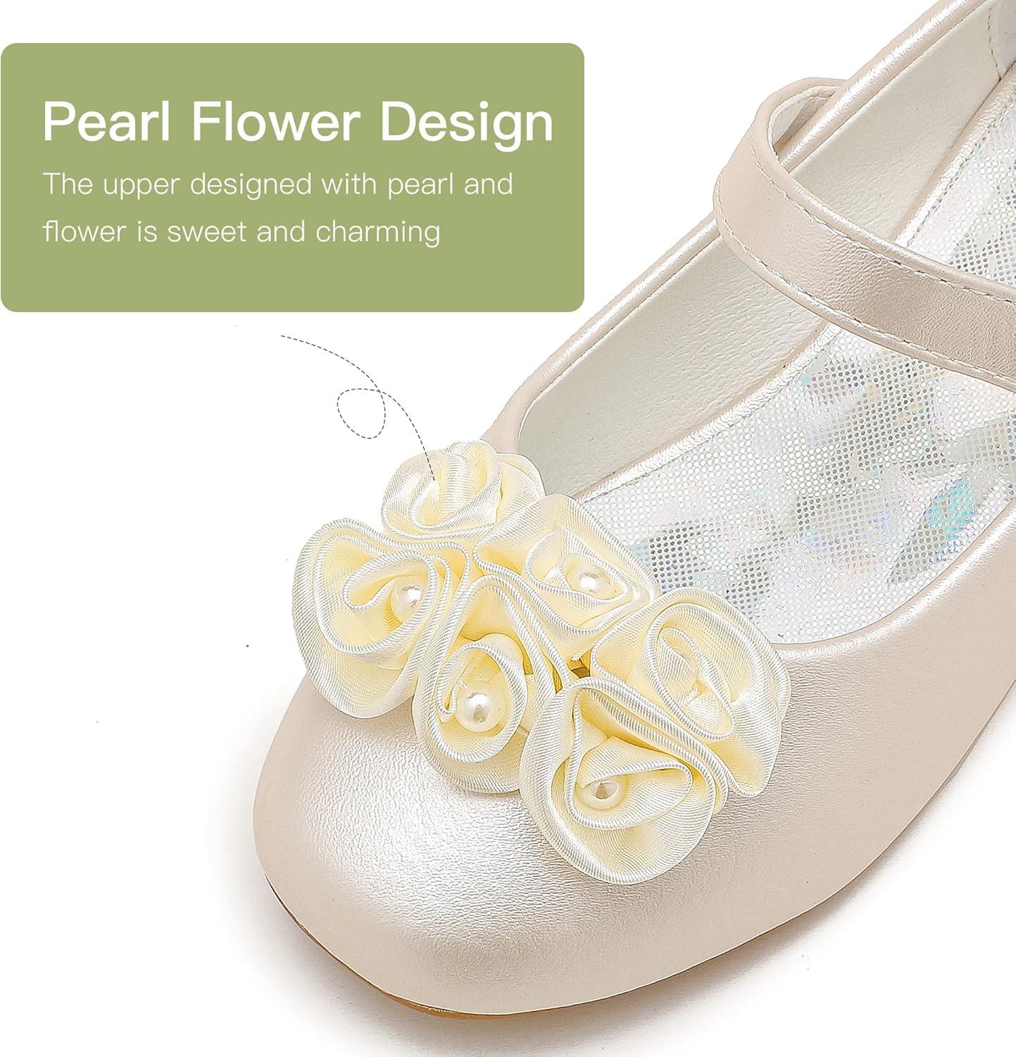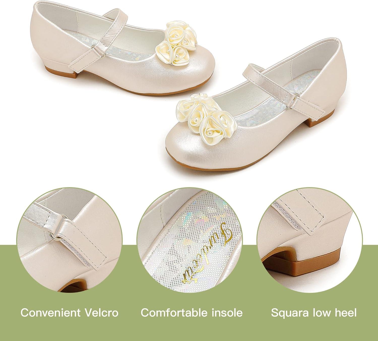 Furdeour Toddler Girls Mary Janes Shoes Low Heel Ballet Flats Wedding Party Dress Shoes for Kids(Floral Cham)