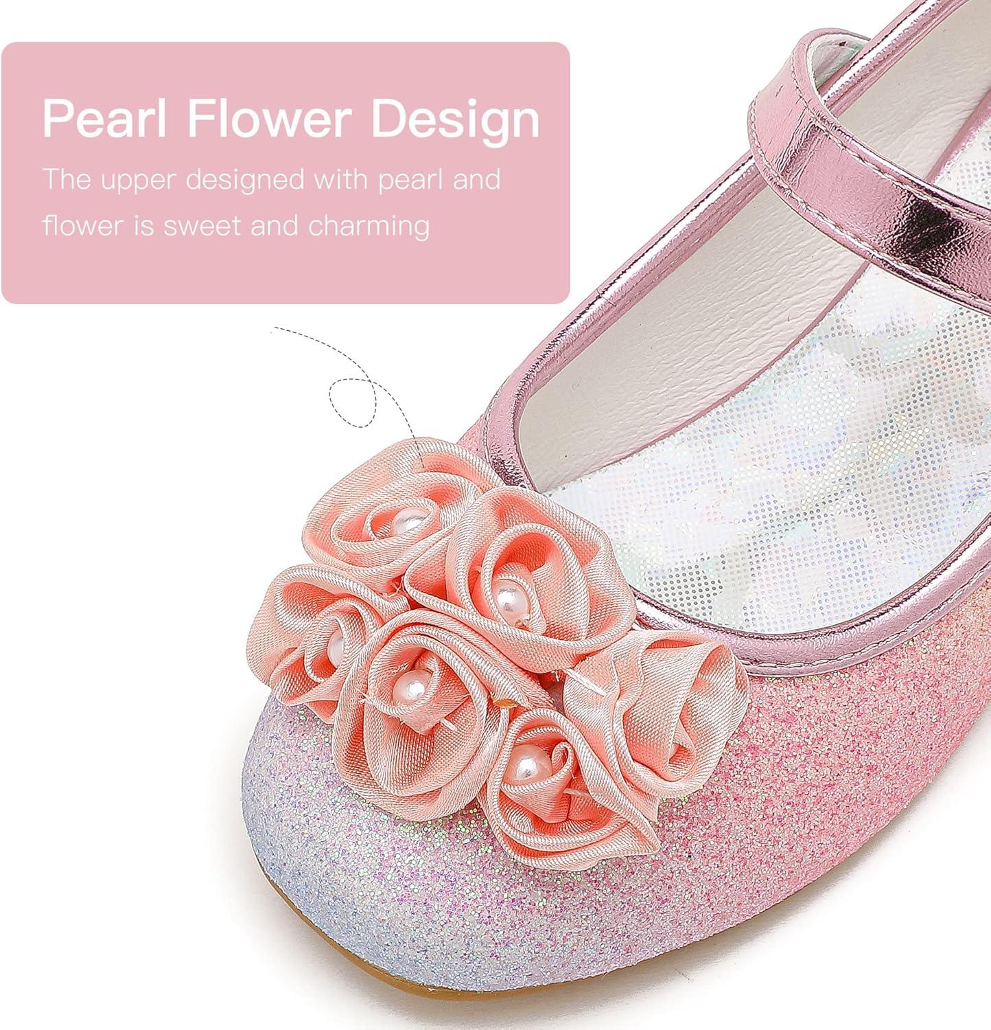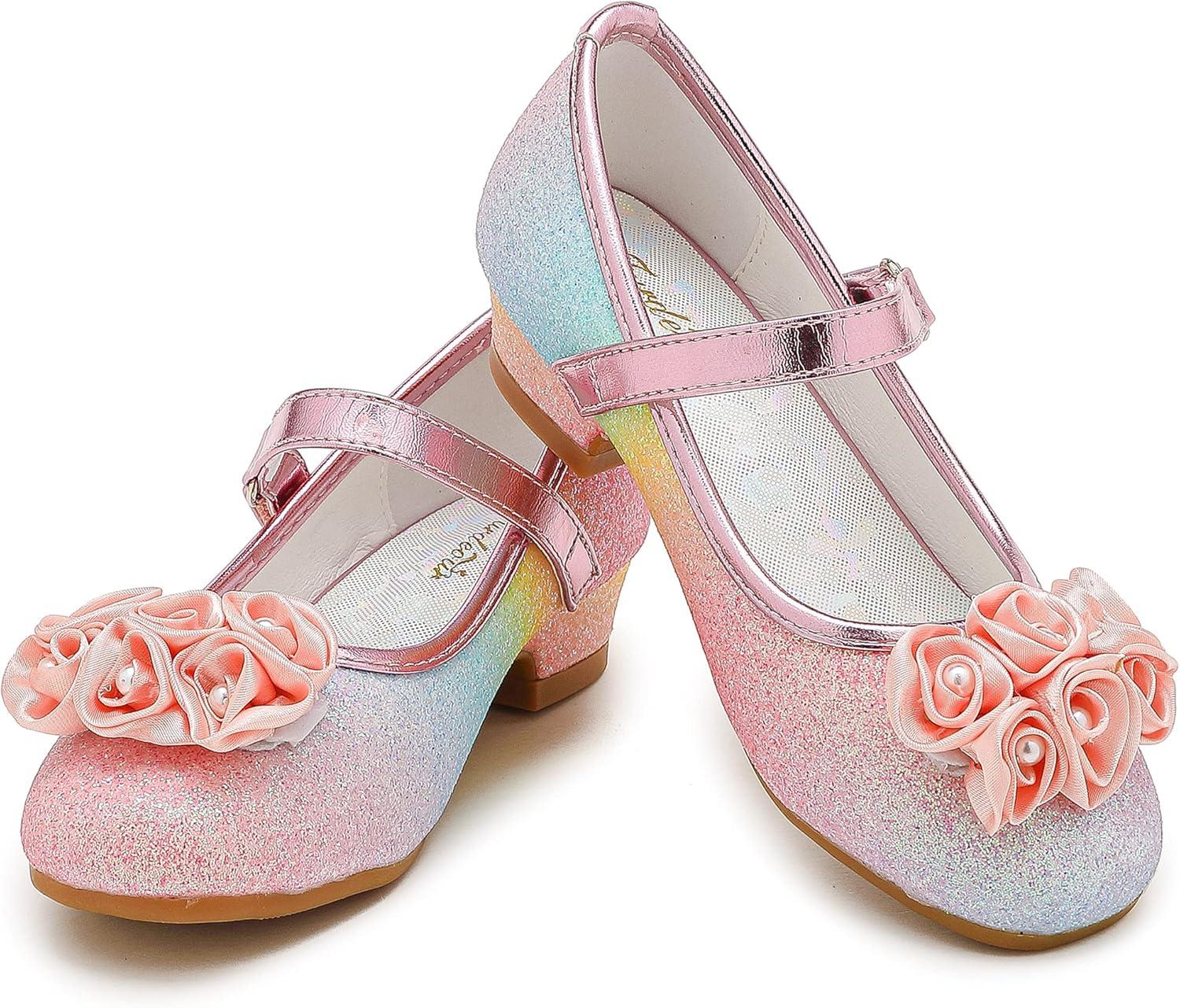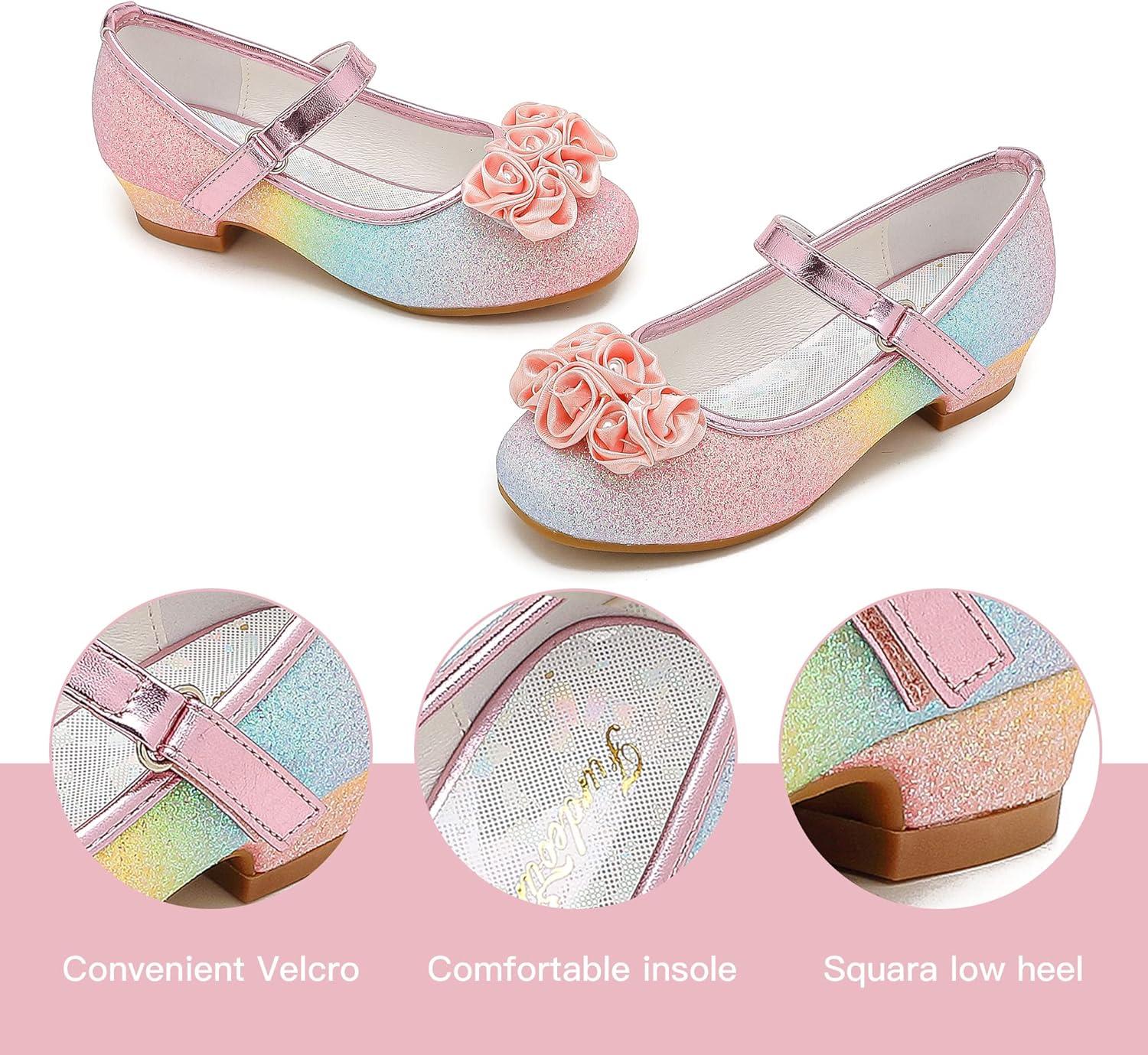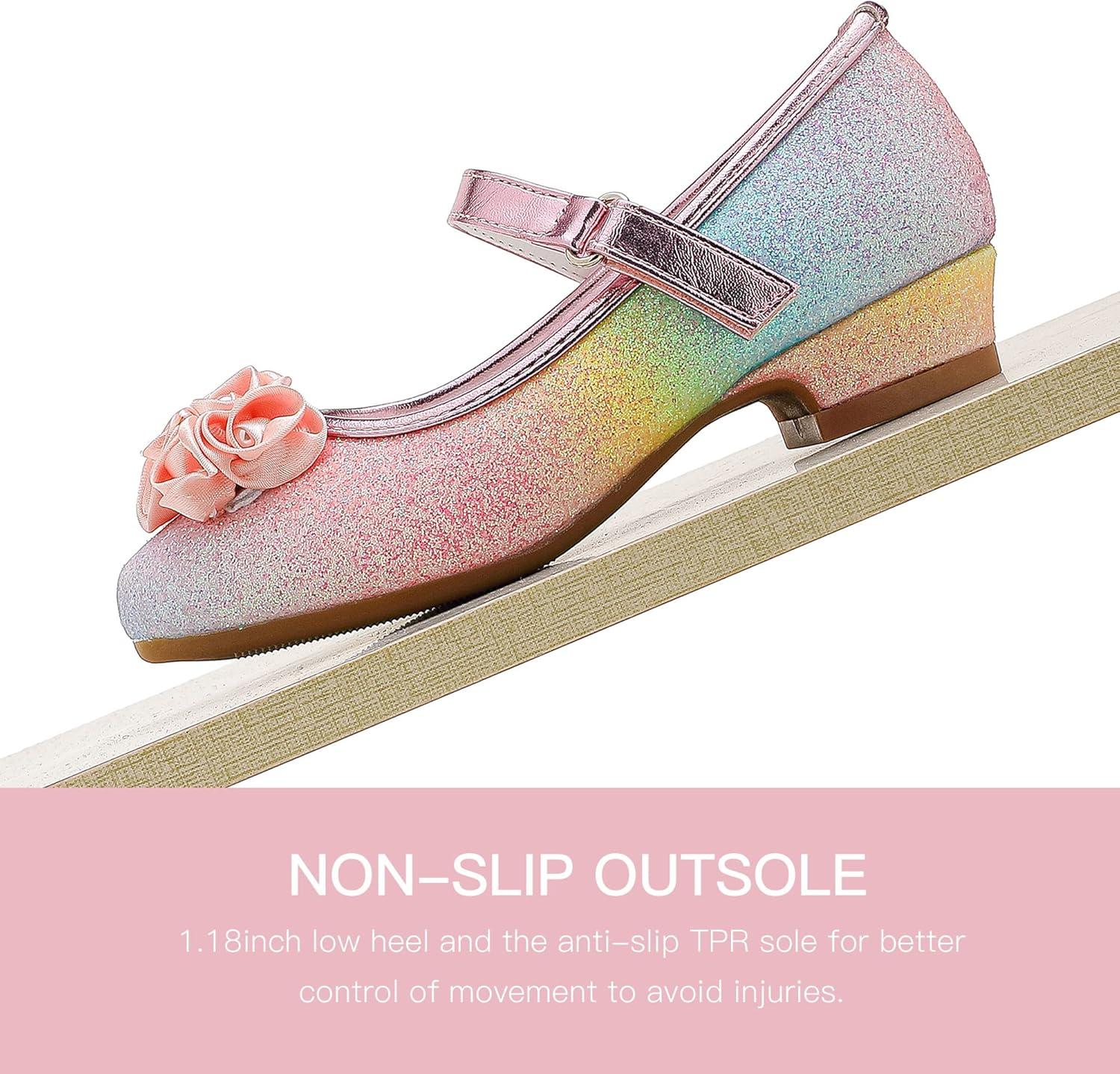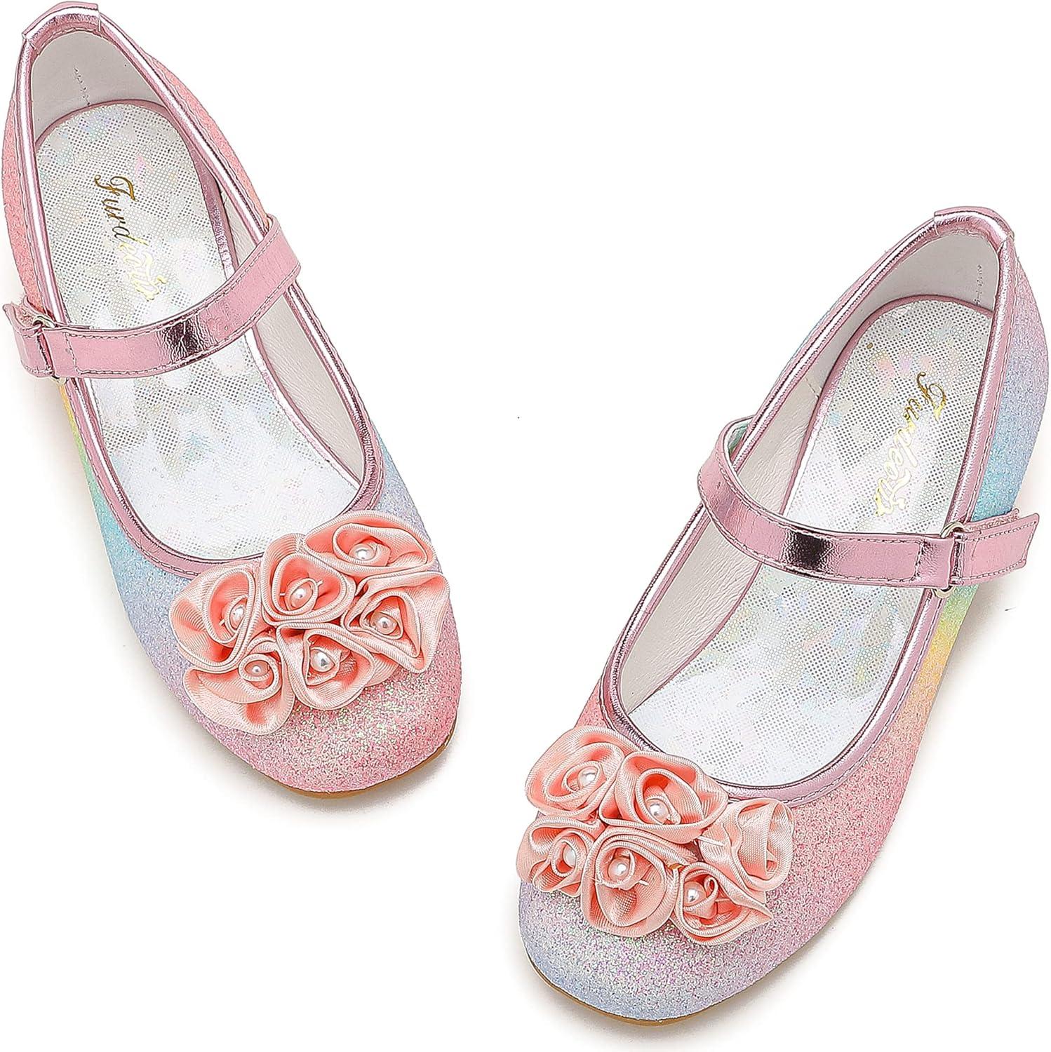 Furdeour Toddler Girls Mary Janes Shoes Low Heel Ballet Flats Wedding Party Dress Shoes for Kids(Floral Rainbow)