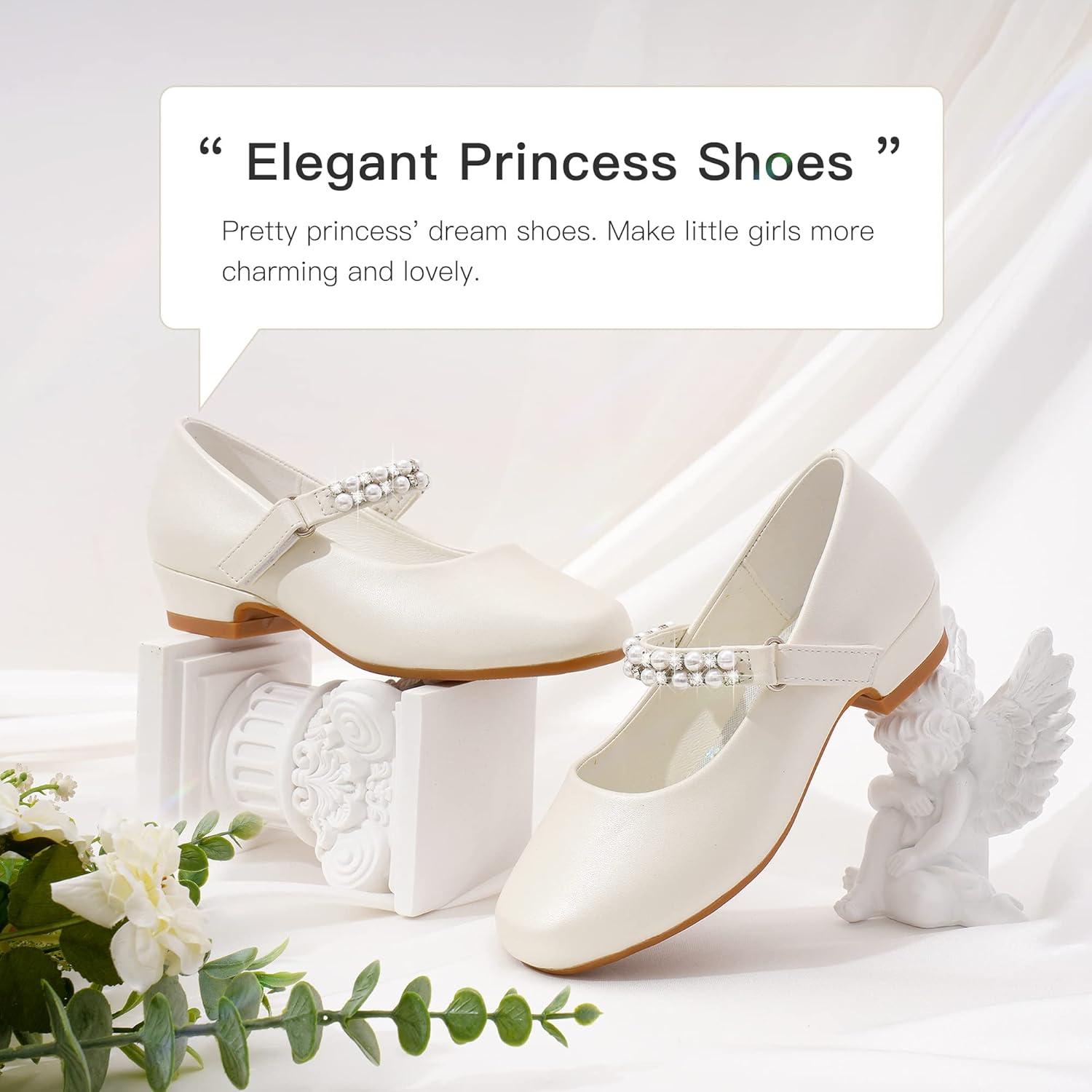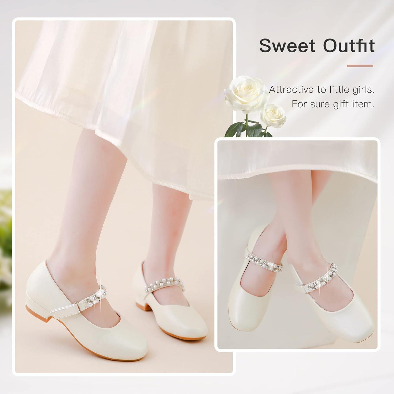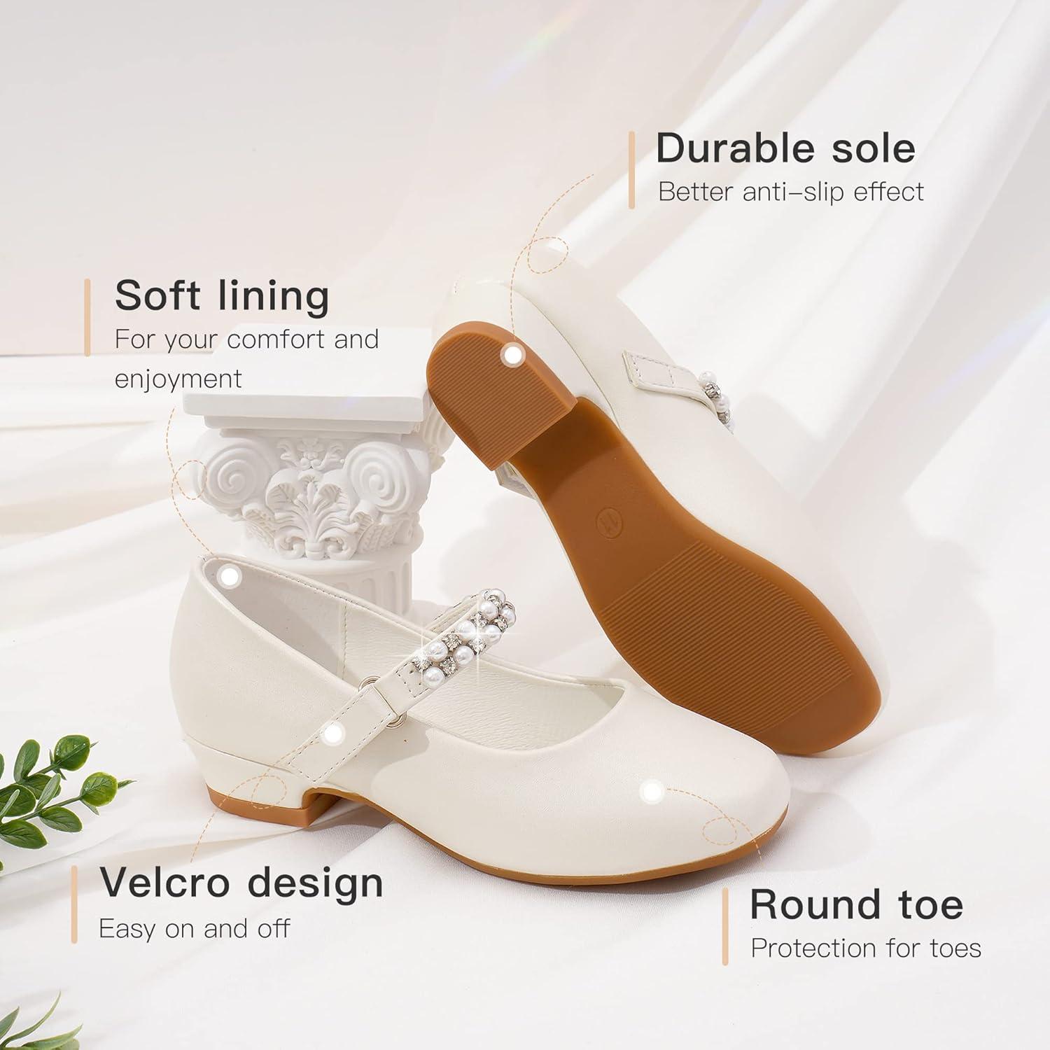 Furdeour Toddler Girls Mary Janes Shoes Low Heel Ballet Flats Wedding Party Dress Shoes for Kids(Ivory)