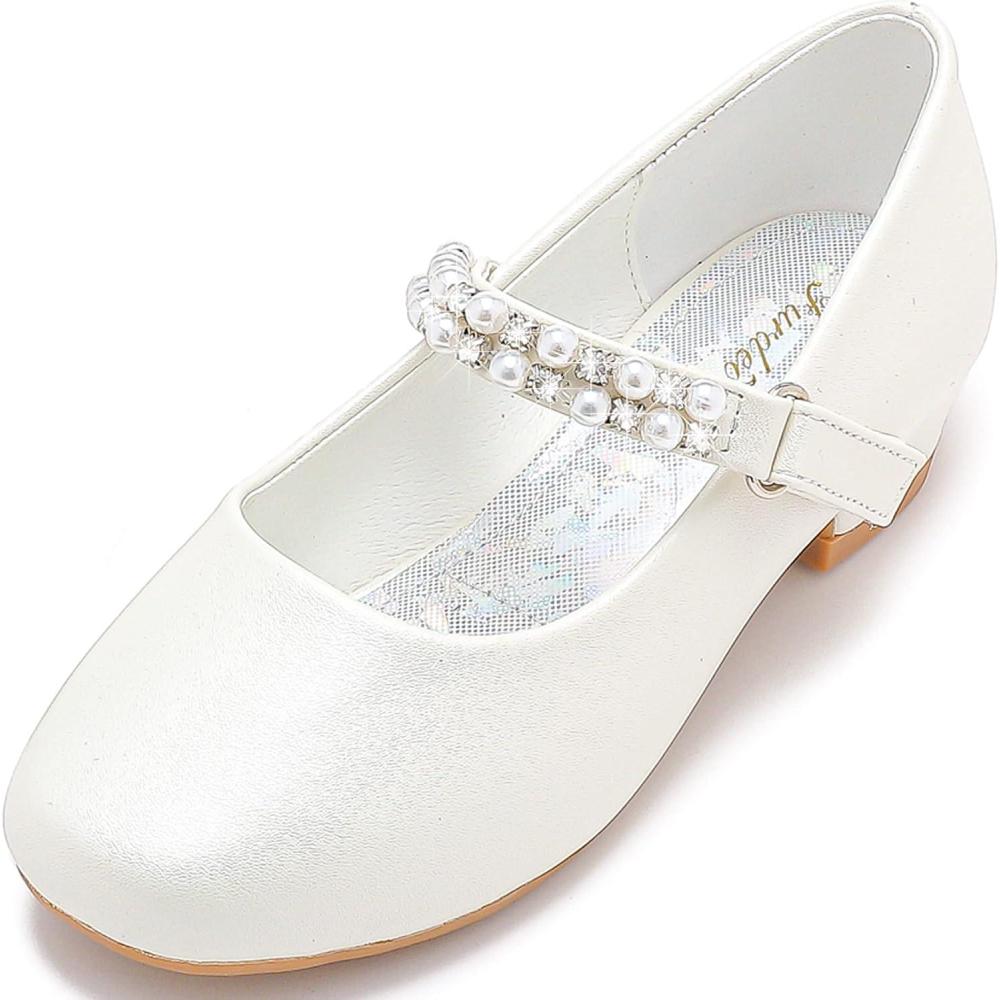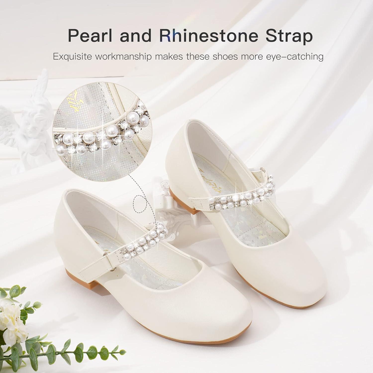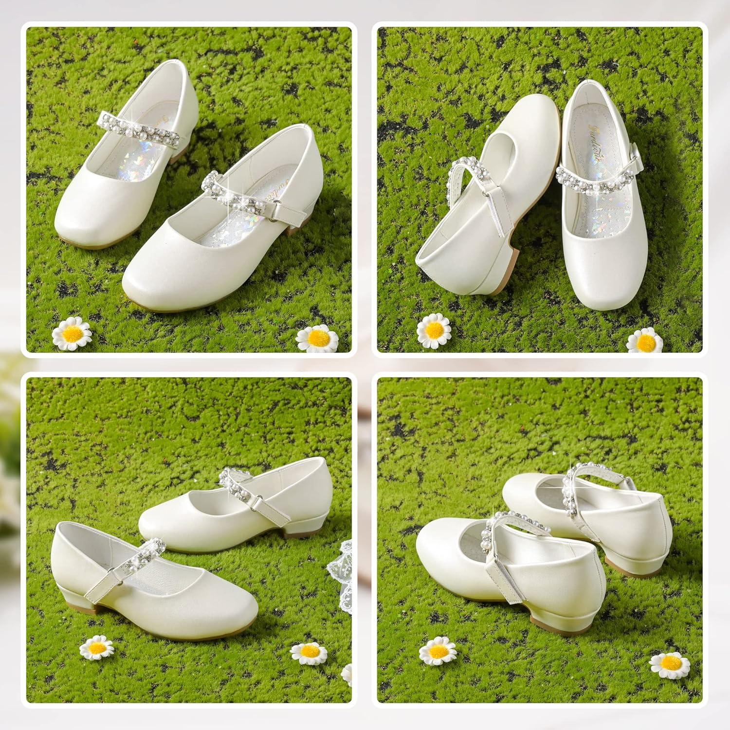 Furdeour Toddler Girls Mary Janes Shoes Low Heel Ballet Flats Wedding Party Dress Shoes for Kids(Ivory)