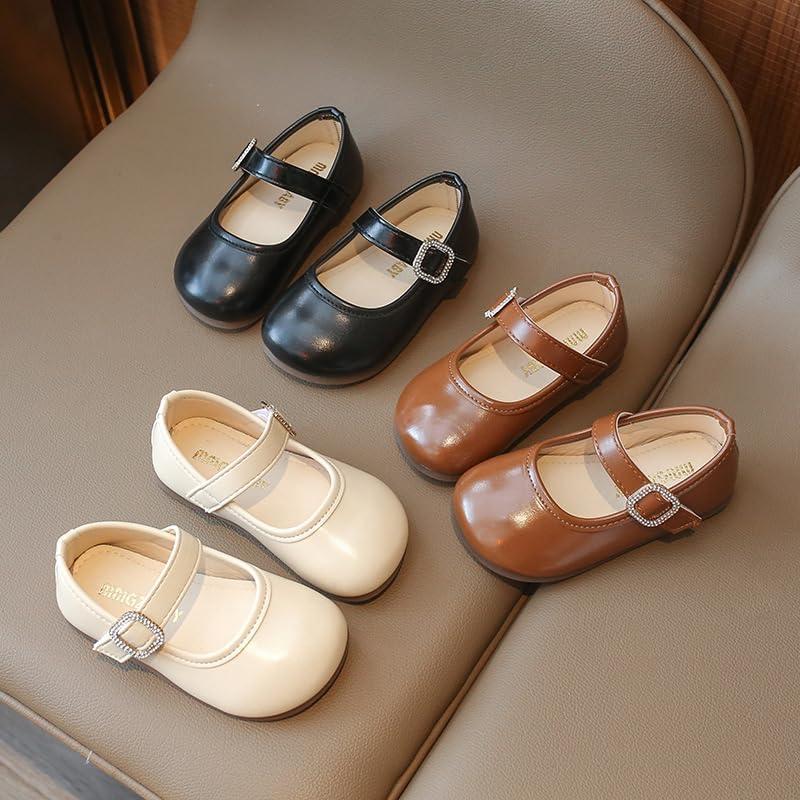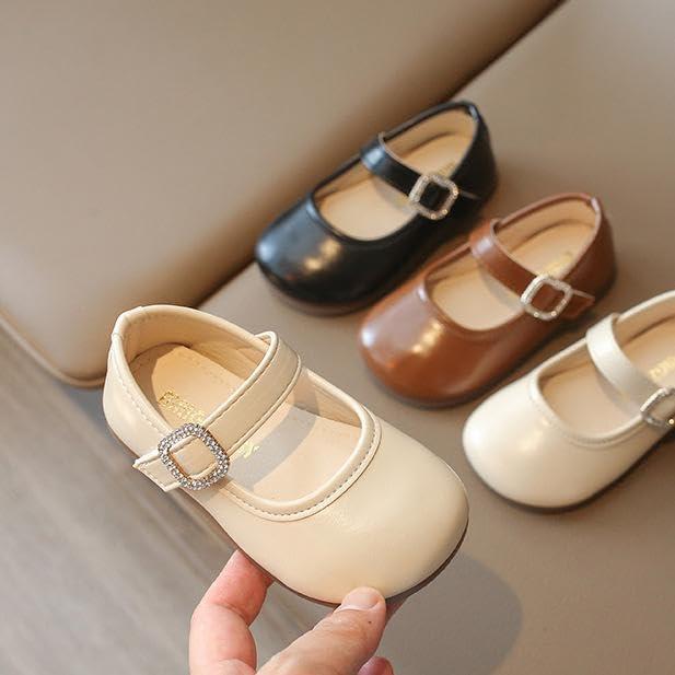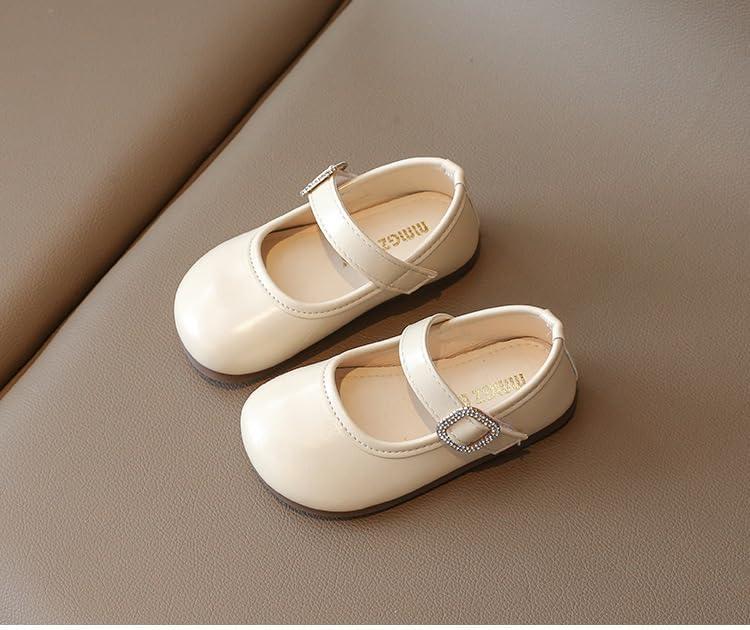Girls Flats Toddler Dress Shoes Little Girl Mary Jane School Uniform Shoes Soft-Soled Baby Leather Princess Flats for Little/Big Kids(Flat Beige)