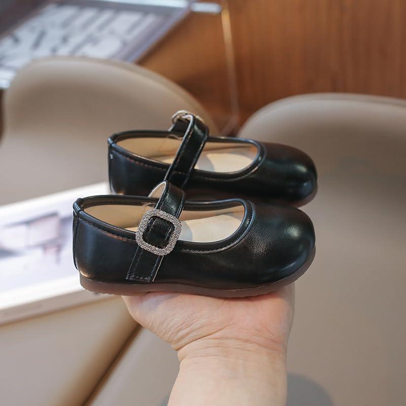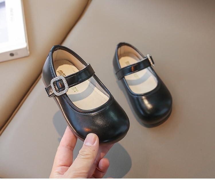 Girls Flats Toddler Dress Shoes Little Girl Mary Jane School Uniform Shoes Soft-Soled Baby Leather Princess Flats for Little/Big Kids(Flat Black)