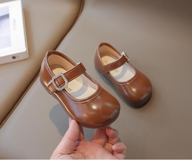 Girls Flats Toddler Dress Shoes Little Girl Mary Jane School Uniform Shoes Soft-Soled Baby Leather Princess Flats for Little/Big Kids(Flat Brown)