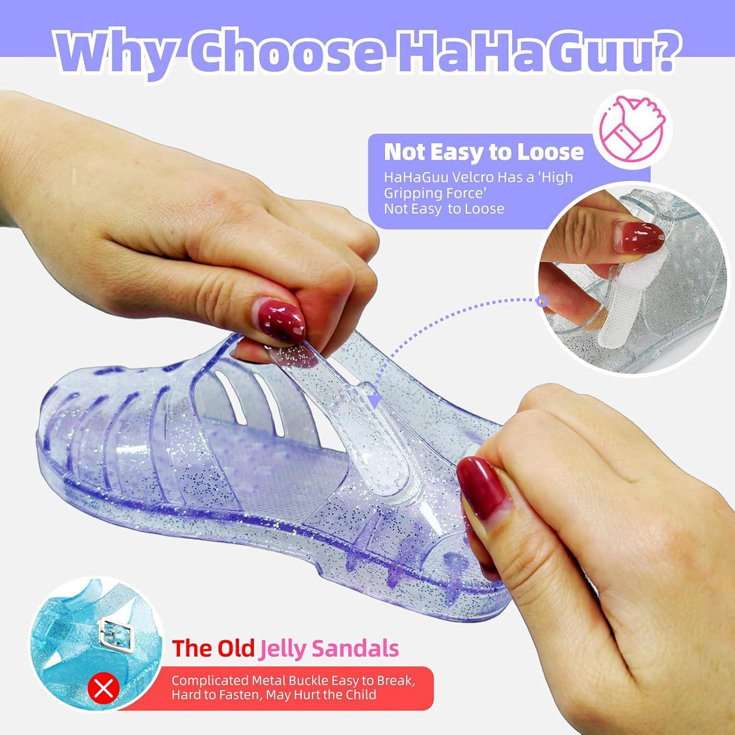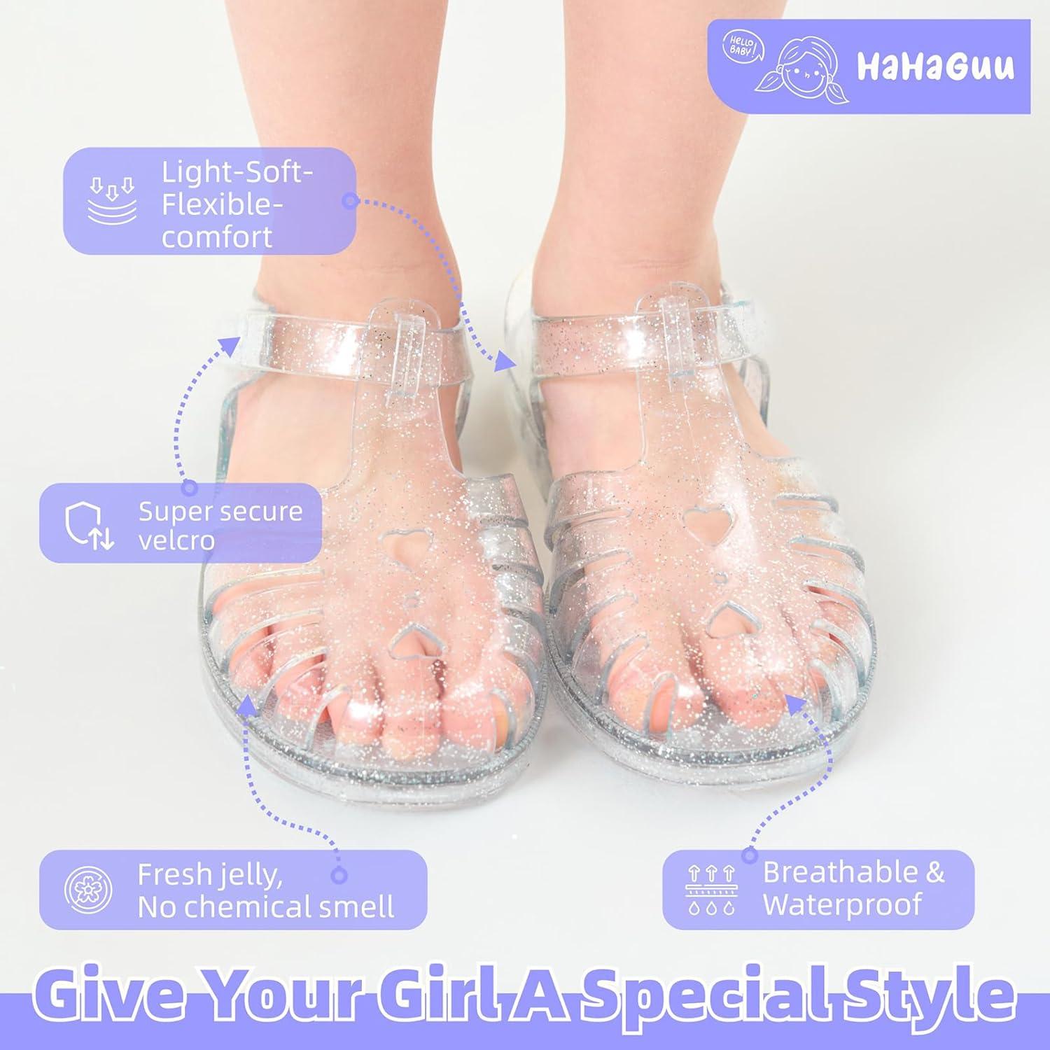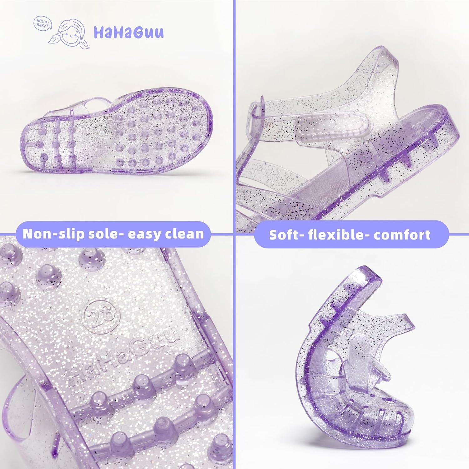 Girls Jelly Sandals Summer Costume Princess Dress Flat Breathable Waterproof Fisherman Gladiator Shoes For Girl Closed Toe Beach Flat-Sandals For Toddler Little Kid Big Kids(Glitter Purple)
