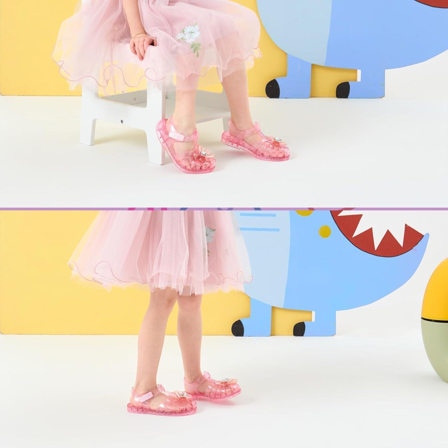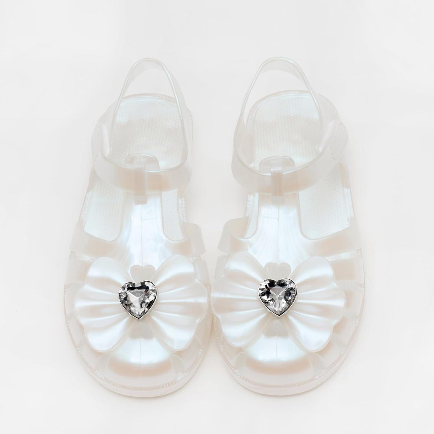 Jelly Sandals For Toddler Girls Closed Toe Waterproof Bow Flat Shoes For Little Kids Big Girl Random Pack Blind Box Pearly White Or Glitter Transparent Color
