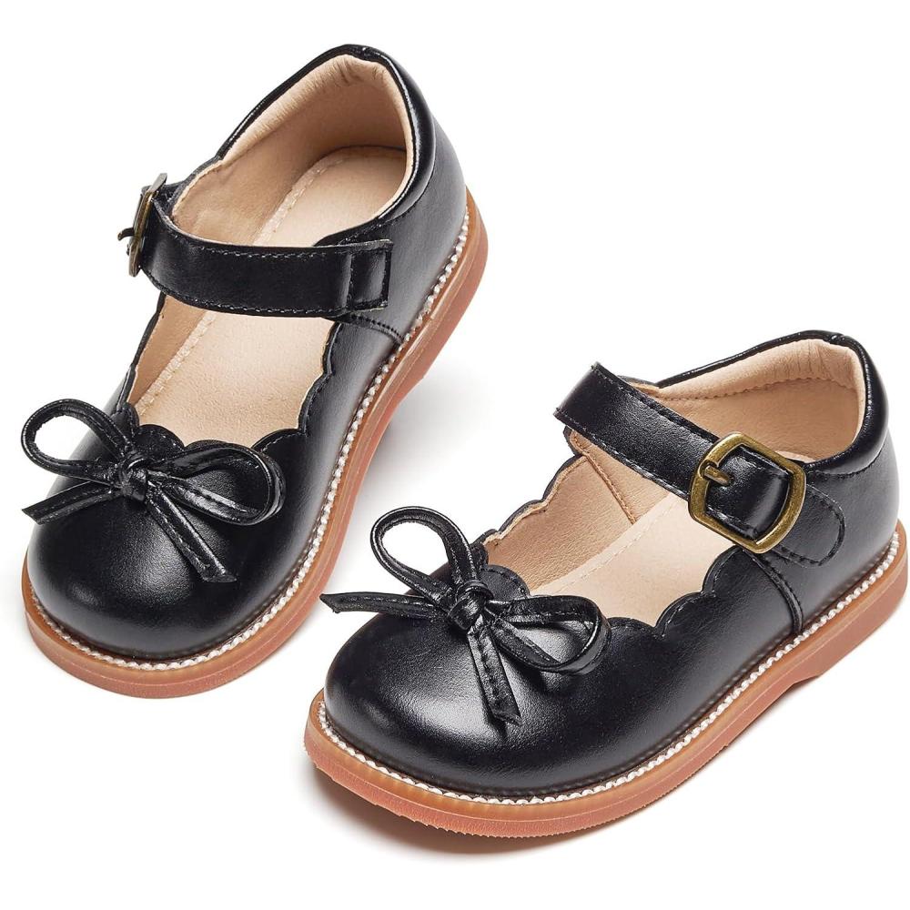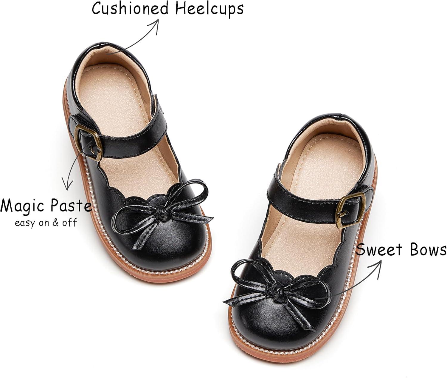 Kolan Todder Little Girls Oxford Shoes Mary Jane T-Strap School Uniform Party Dress Flat Shoes(Ke07-black)