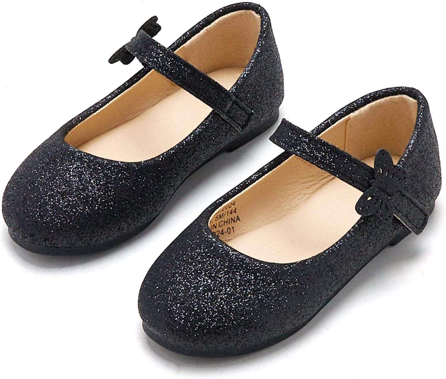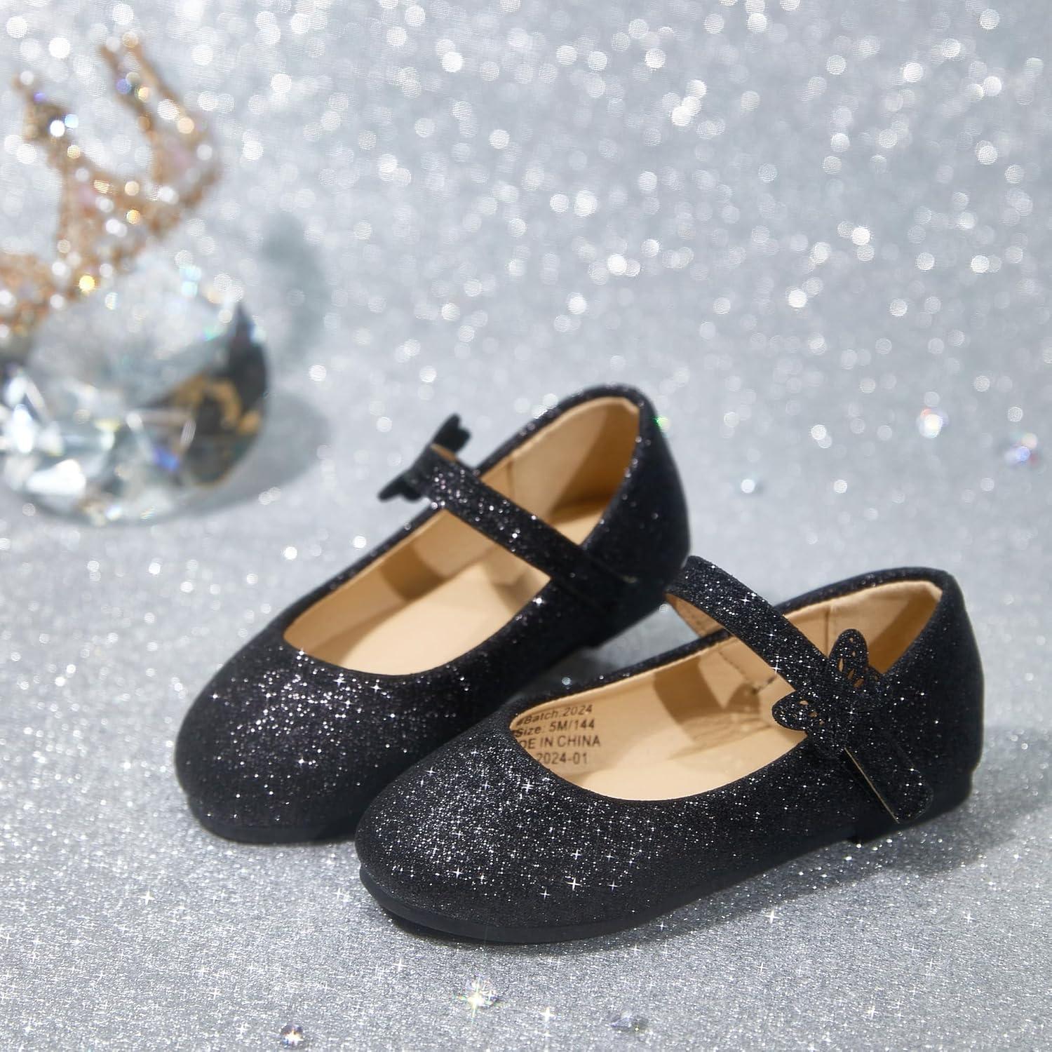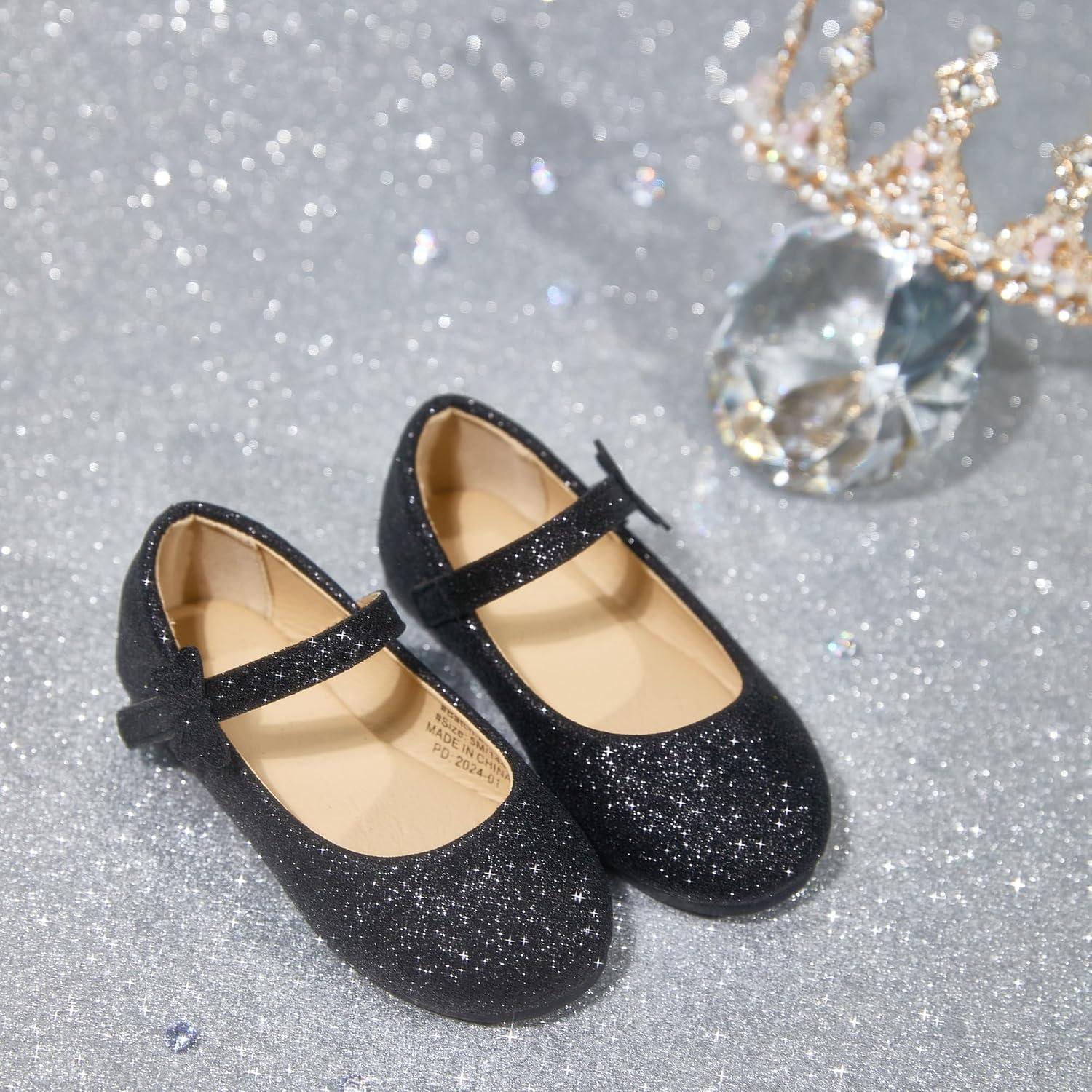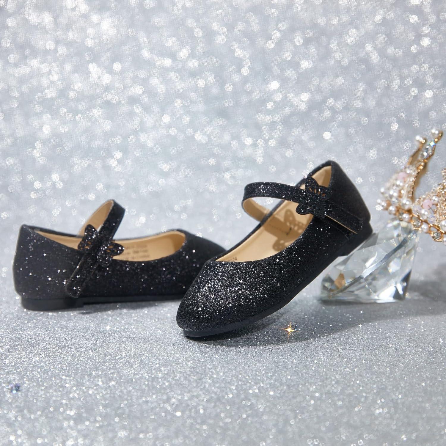Kolan Toddler Little Girls Mary Jane Ballet Flat Dress Shoes(Kh21 Glitter Black)