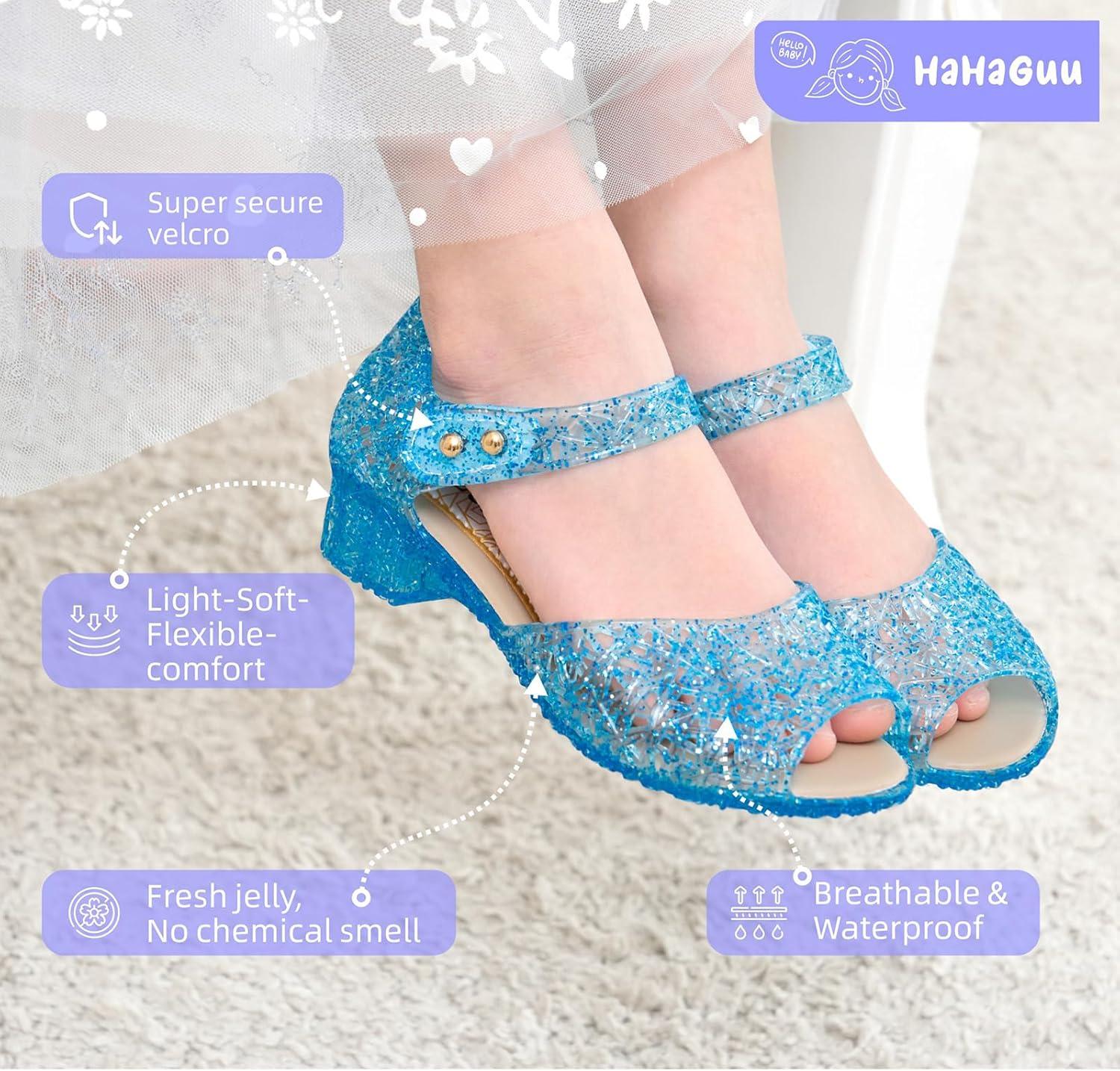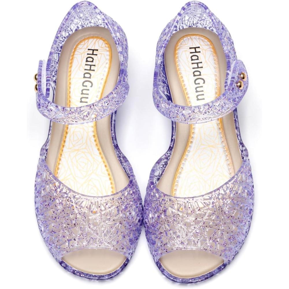 Princess Jelly Flats Shoes Girls Birthday Party Heels Snow Queen Cosplay Costumes Dress Up Sandals for Toddler Little Girls Big Kids(Open-toe/Lilac)